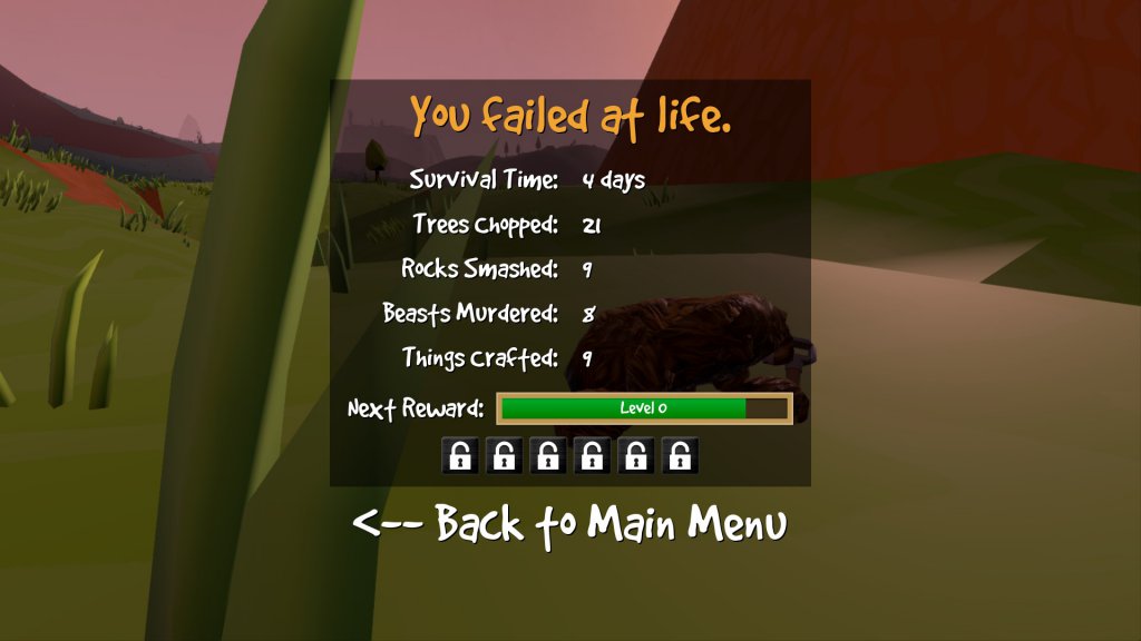 For the masochists, there is a Hard mode. No health regeneration, faster hunger loss, obviously permadeath as well as experience, but also with harder ‘beasties’ and more frequent ‘events’. (For this review, I didn’t even fire up Hard mode — normal was tough enough for me — even too hard sometimes, and this is from a guy with literally thousands of ‘survival’ game hours.)