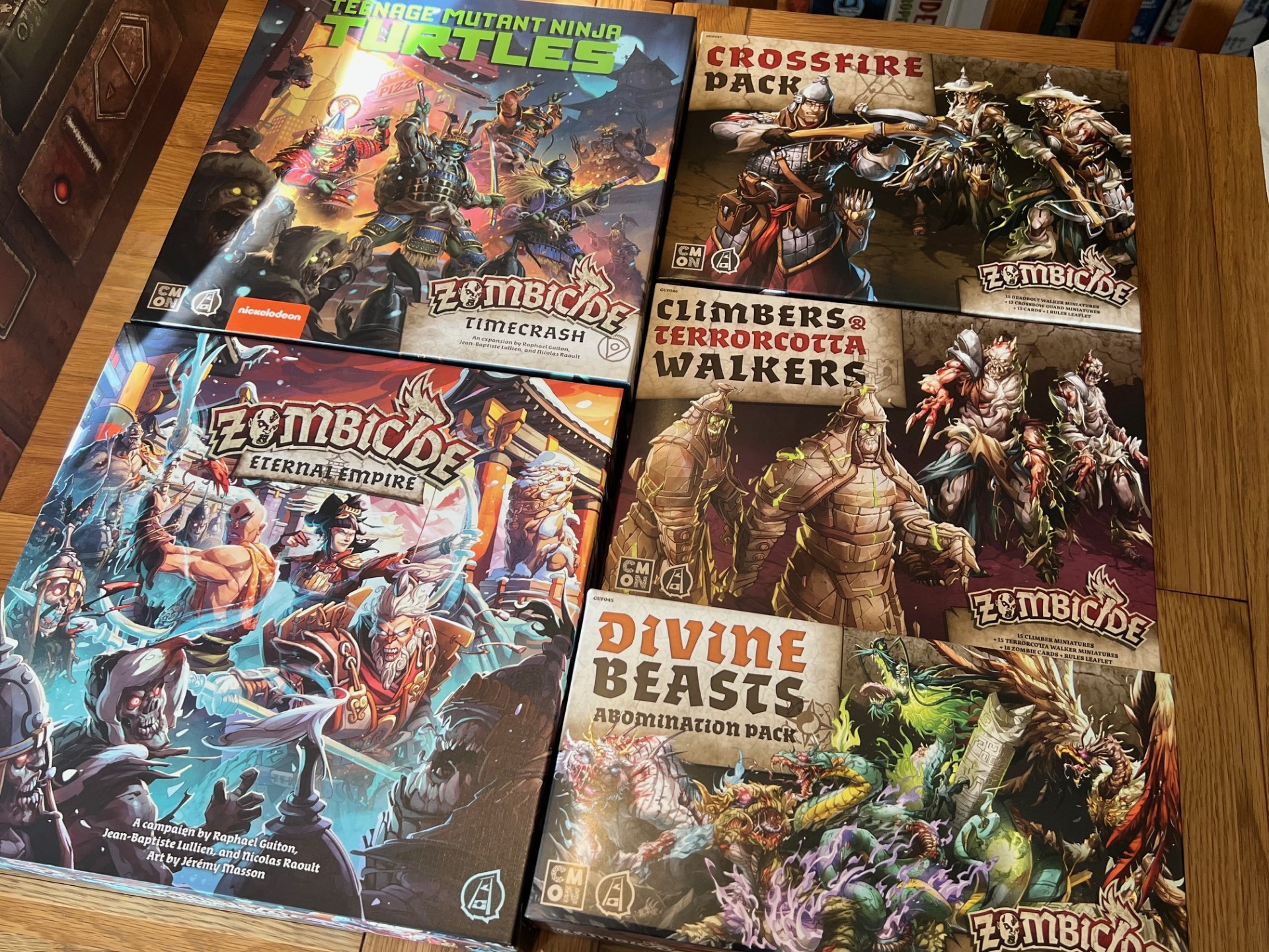 The Zombicide: White Death – Divine Beasts Abomination Pack has four fantastic, sizable miniatures and it adds a chunky, challenging (but rewarding) element to your game. I love the recurring/escalating threat that these abominations pose, and the fact that you’ll face different challenges from them each time you play is just fantastic.