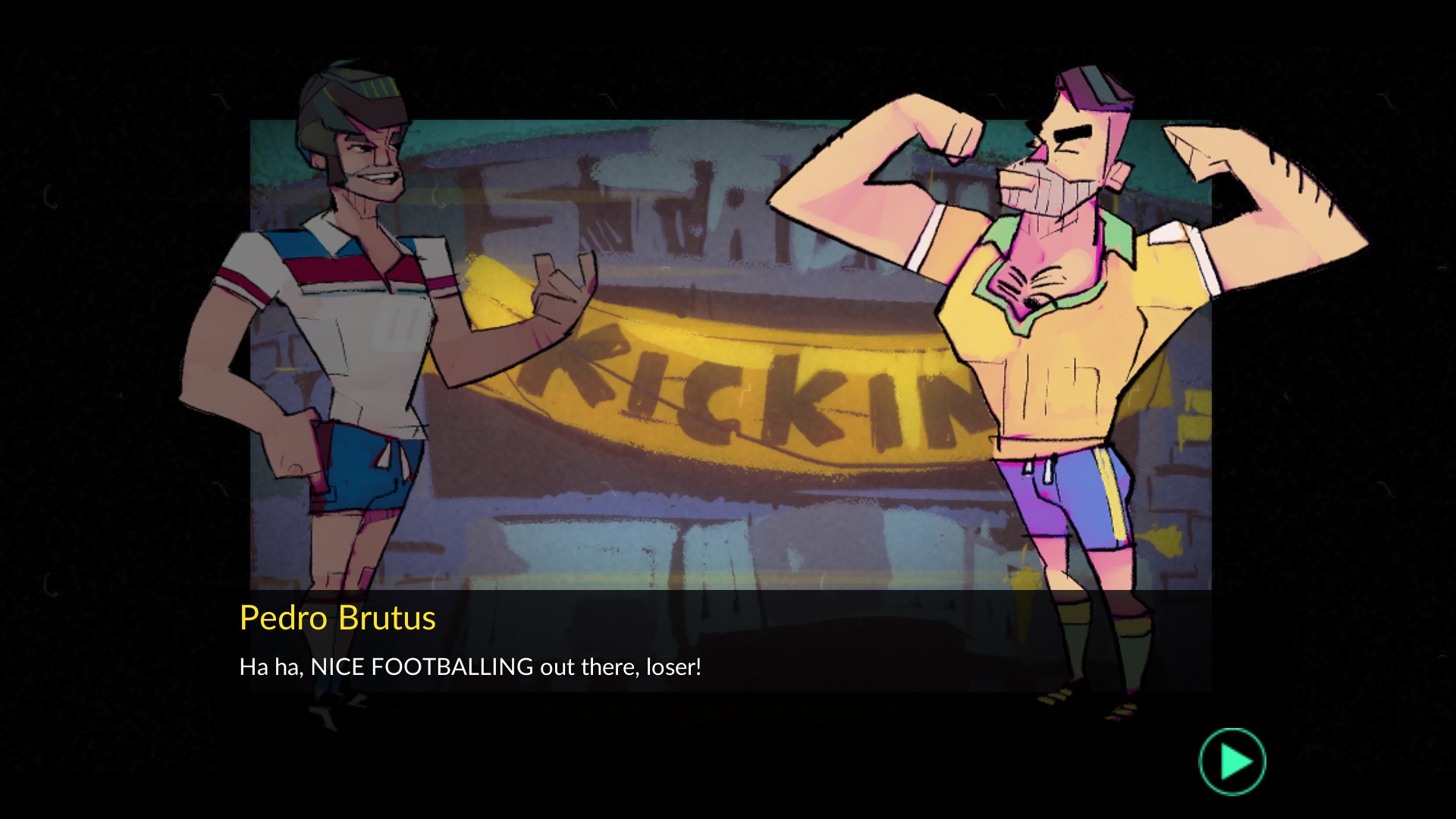 What holds it all together is the fact that, aside from the dodges, massive slides and big kick abilities, this football game feels delightfully self-aware that it is a parody of the sport. The writing in the campaign mode — which follows a new footballer through the league, like FIFA’s The Journey mode — is loaded with silliness and idiocy, clearly exposing Size Five Games’ emergence point as a developer with their Ben There, Dan That point-and-click series which launched back in the noughties. It’s not just the story mode which the humour presents itself in; a tickertape rolls under the league table, churning out nonsense news of churlish and childish kickmen. The sponsors are silly, as are player and team names.