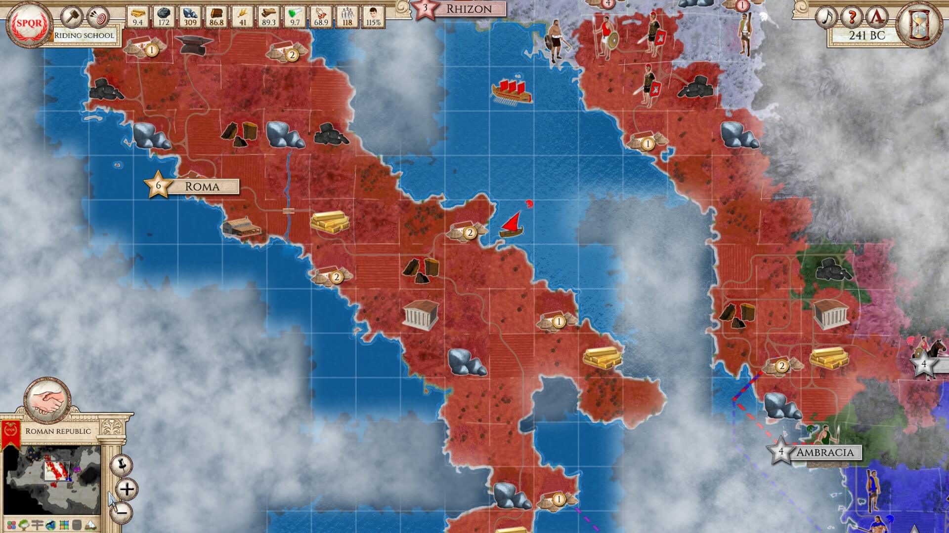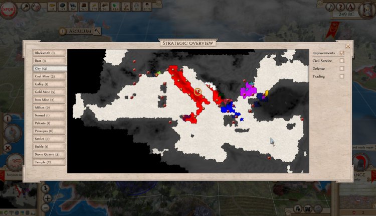 You’re obviously going to need an army and navy to protect both your cities and (hopefully) your growing empire. Aggressors: Ancient Rome has a ton of nuances involved with their military units. Importantly, they are recruited directly from your cities’ populations. Then, there’s way more going on than simply attack and defense points. Along with a myriad of different types, there is also morale, loyalty and supply management. Your troops gain experience. They have varying attack, defense and mobility ratings. Armies have their own movement variables for terrain.