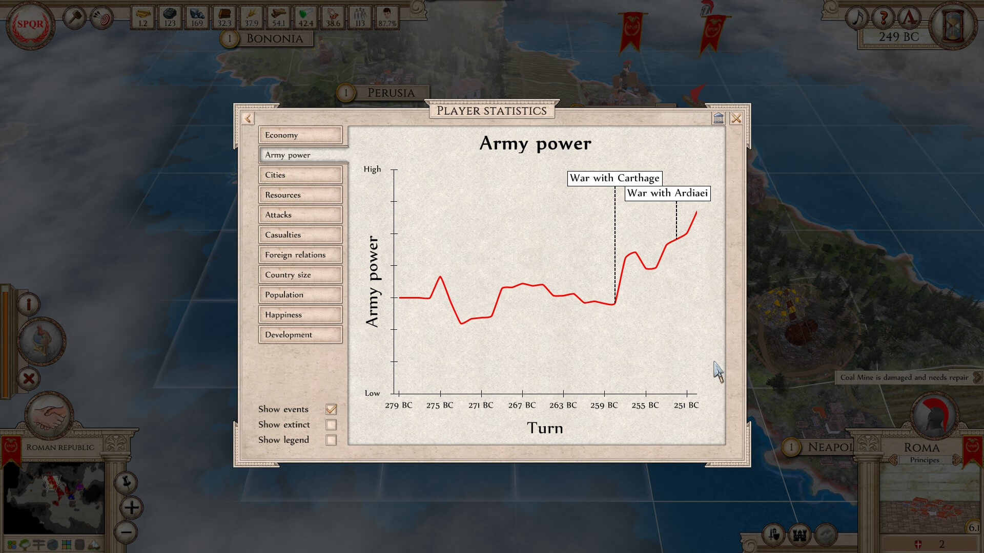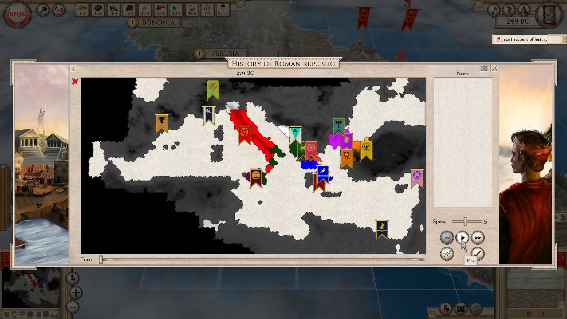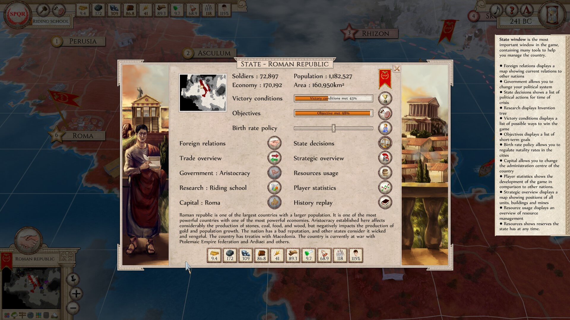 Learning options: 1) Carthage is the largest in area, has the best economy, and is the most powerful. However, there are multiple landmasses under its control. 2) the Ptolemaic Empire is second in those categories, but again, has a chunk that’s not connected to its main area. then 3) the Roman Republic is the least powerful, populated, etc. However, everything is confined, close at hand, and easy to keep up with.