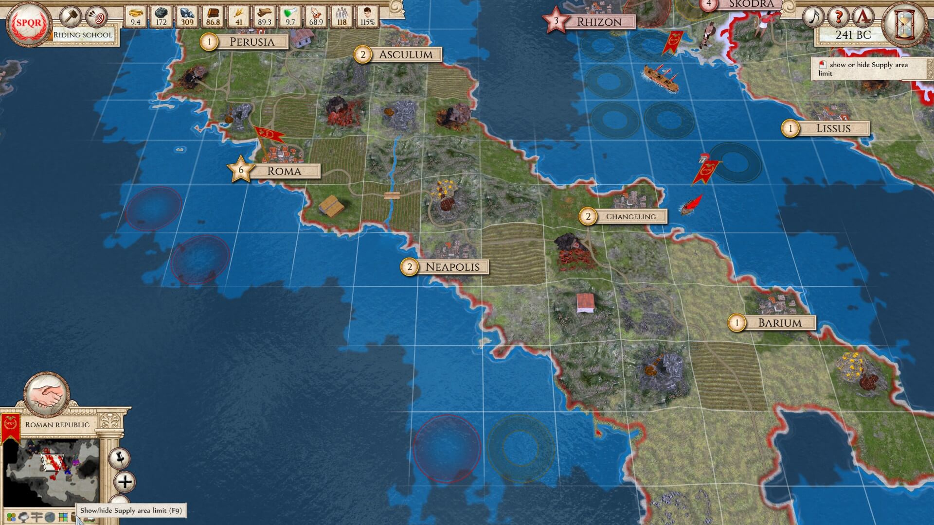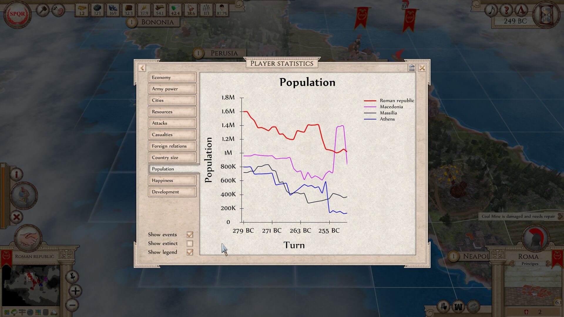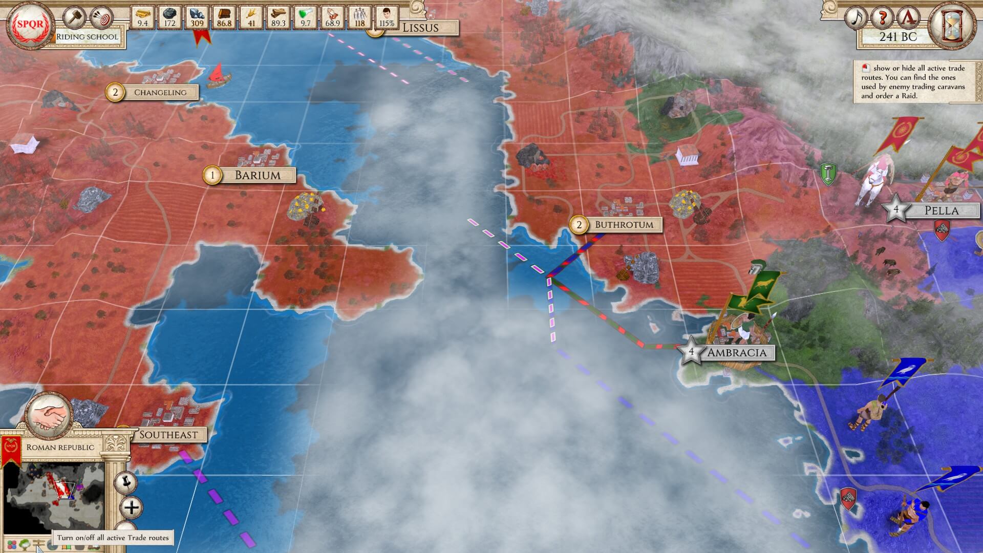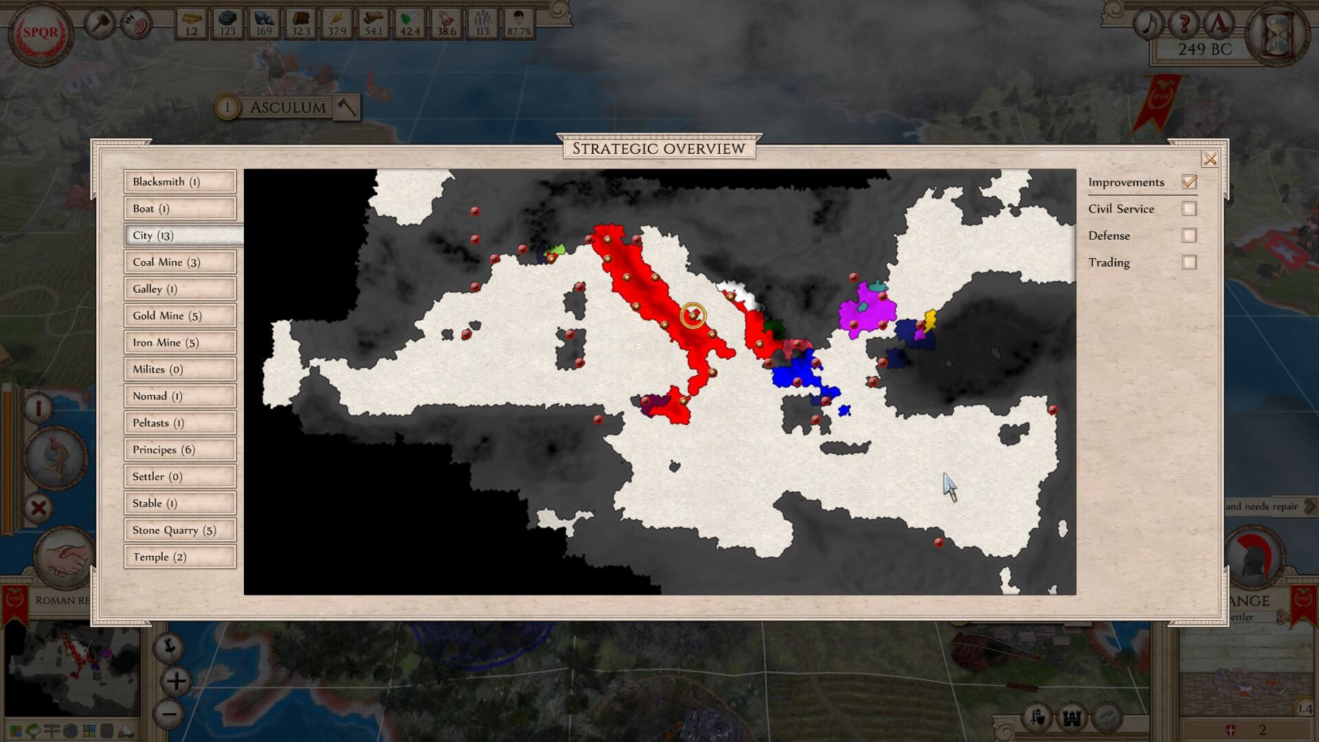 Learning options: 1) Carthage is the largest in area, has the best economy, and is the most powerful. However, there are multiple landmasses under its control. 2) the Ptolemaic Empire is second in those categories, but again, has a chunk that’s not connected to its main area. then 3) the Roman Republic is the least powerful, populated, etc. However, everything is confined, close at hand, and easy to keep up with.