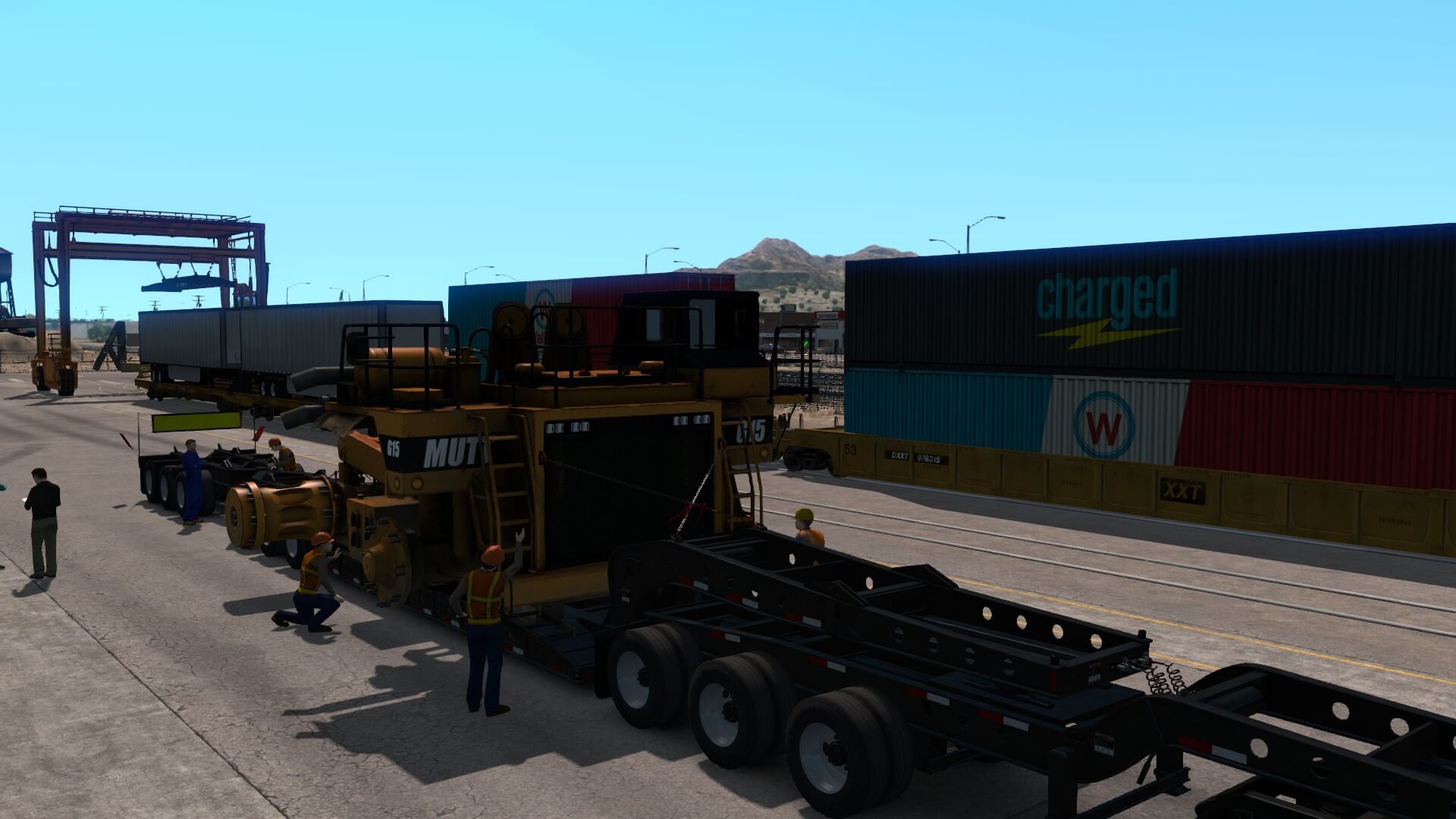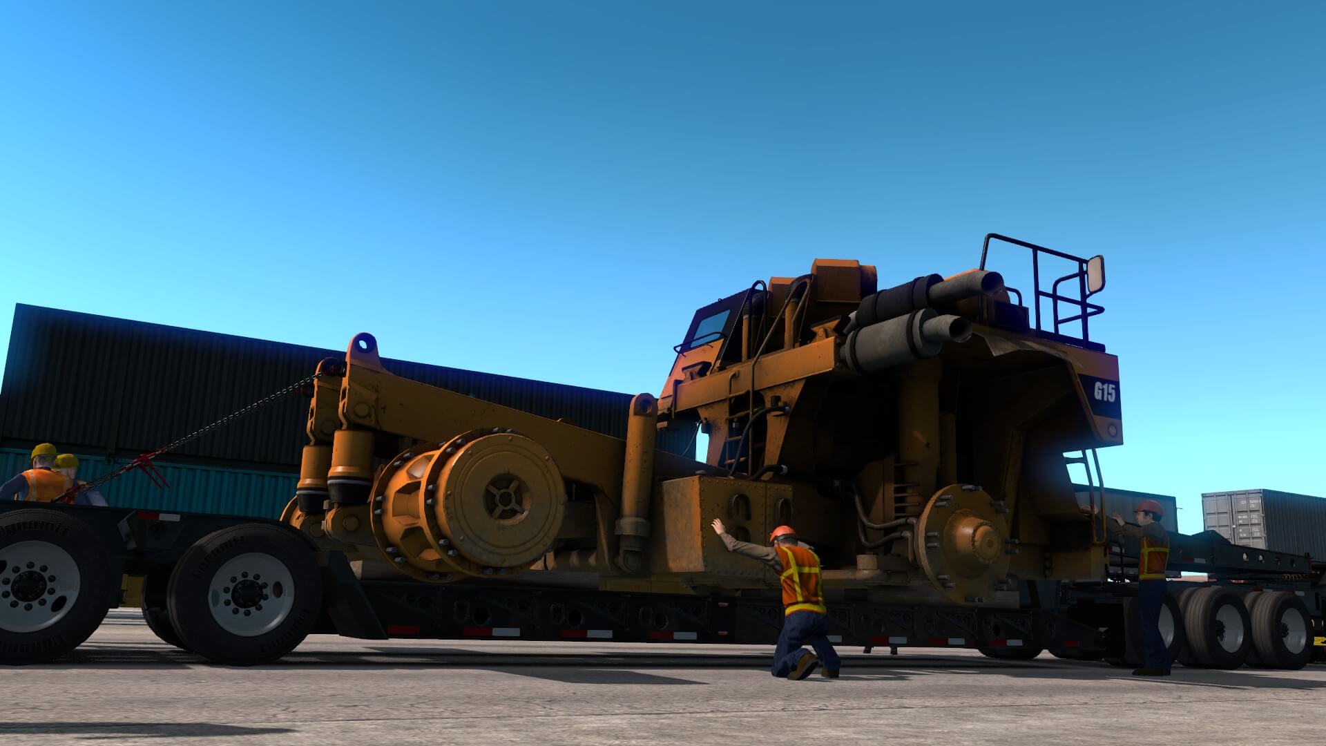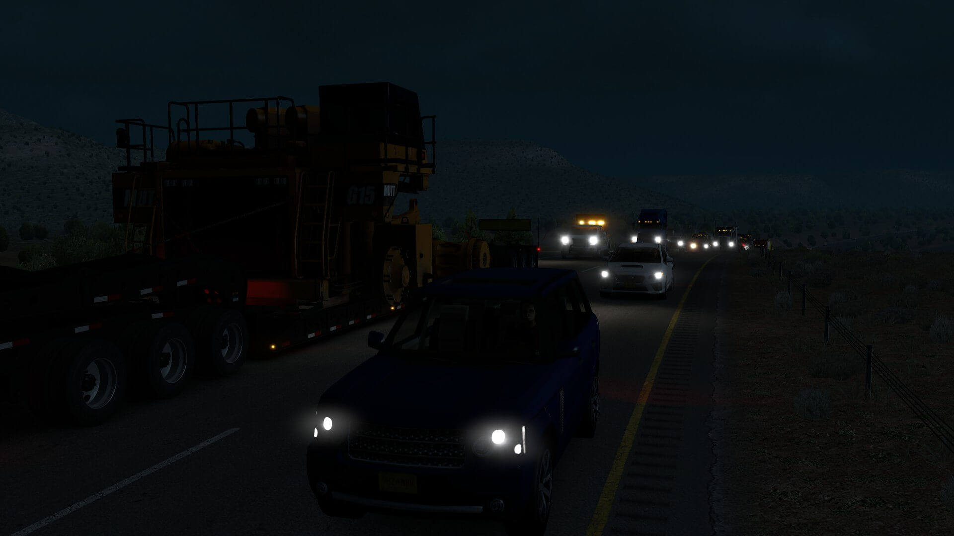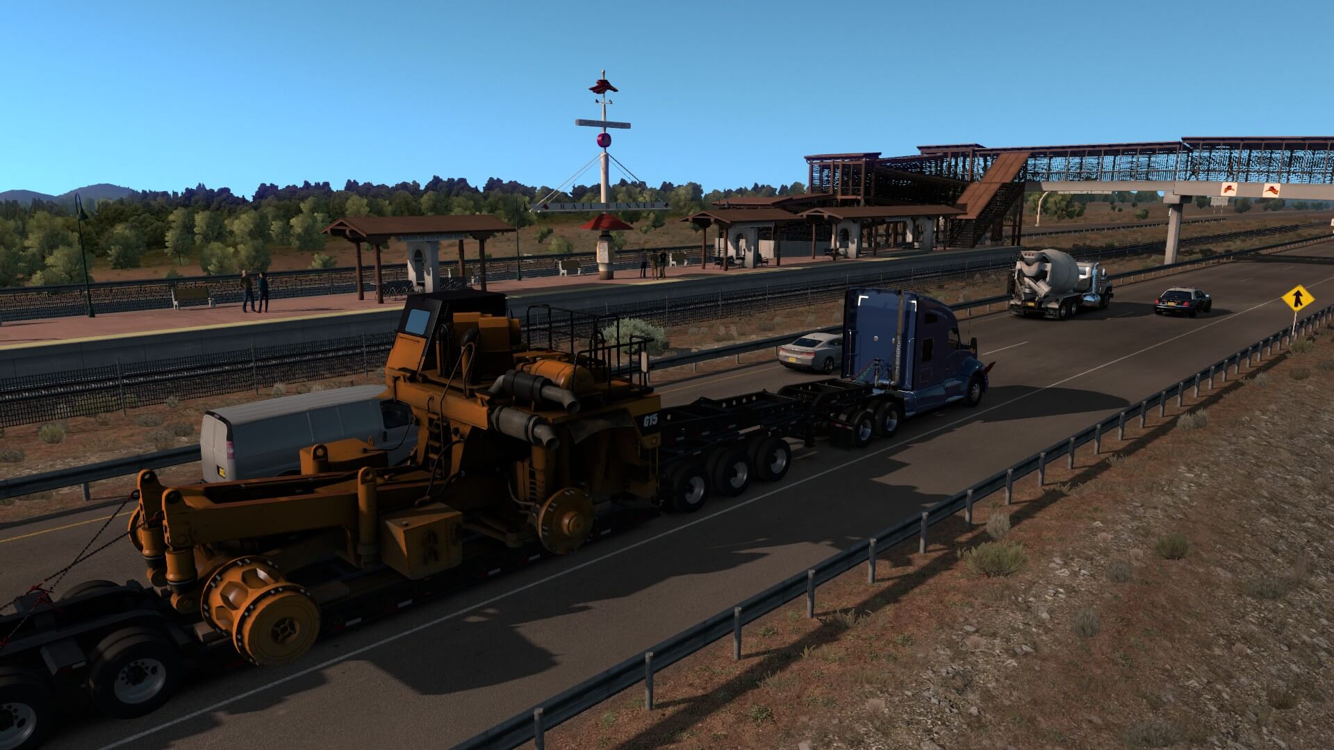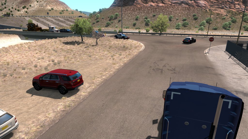 Back to business. I am extremely impressed Special Transport is so well-crafted as well as thought-out. Just as in reality, the entire trip is laid out ahead of time, escort-wise. This is serious cargo and important business. Every, single time we approach any kind of intersection, on-ramp, possible traffic spot, etc, there is some sort of attendant sitting there, with traffic already halted.