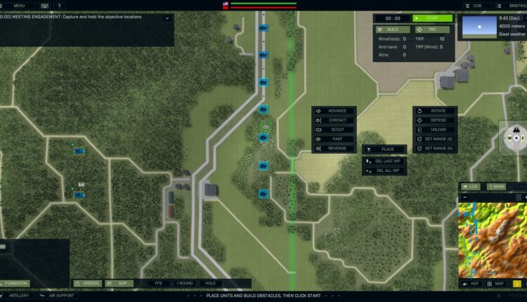 Once you’re all setup, and happy with your choices, this is finally where the action begins. Hit the “Start” button and watch how all your aspirations, calculations, and master plans work out. Now, remember, this is RTWP so if you notice something really bad happening in a certain part of the map… at the very least you can do is pause and adjust it. No more chances to move whole sections around (e.g. like during the setup phase), however, you can change the orders of every individual unit.(I’ve obviously run into units hidden by the FoW and been caught off guard). Luckily, most vehicles have a “reverse” in their tranny. You might suffer from a few losses, but it’s better than losing whole platoons/companies being ass-wiped for ya.