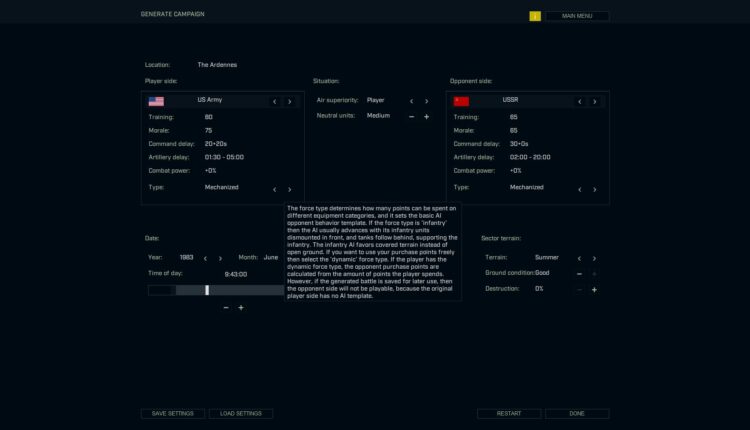Under the “Generate Campaign” button, I intentionally chose “The Ardennes” because… just as I told you ahead of time that I had some Cold War games coming up (of which this is one of those too)… I said that my next review will be specifically aimed at “The Ardennes” as well. Odd how the stomach, oh I mean, how the world turns. Luckily, I get to play two Ardennes in a row.
