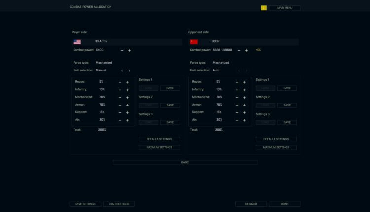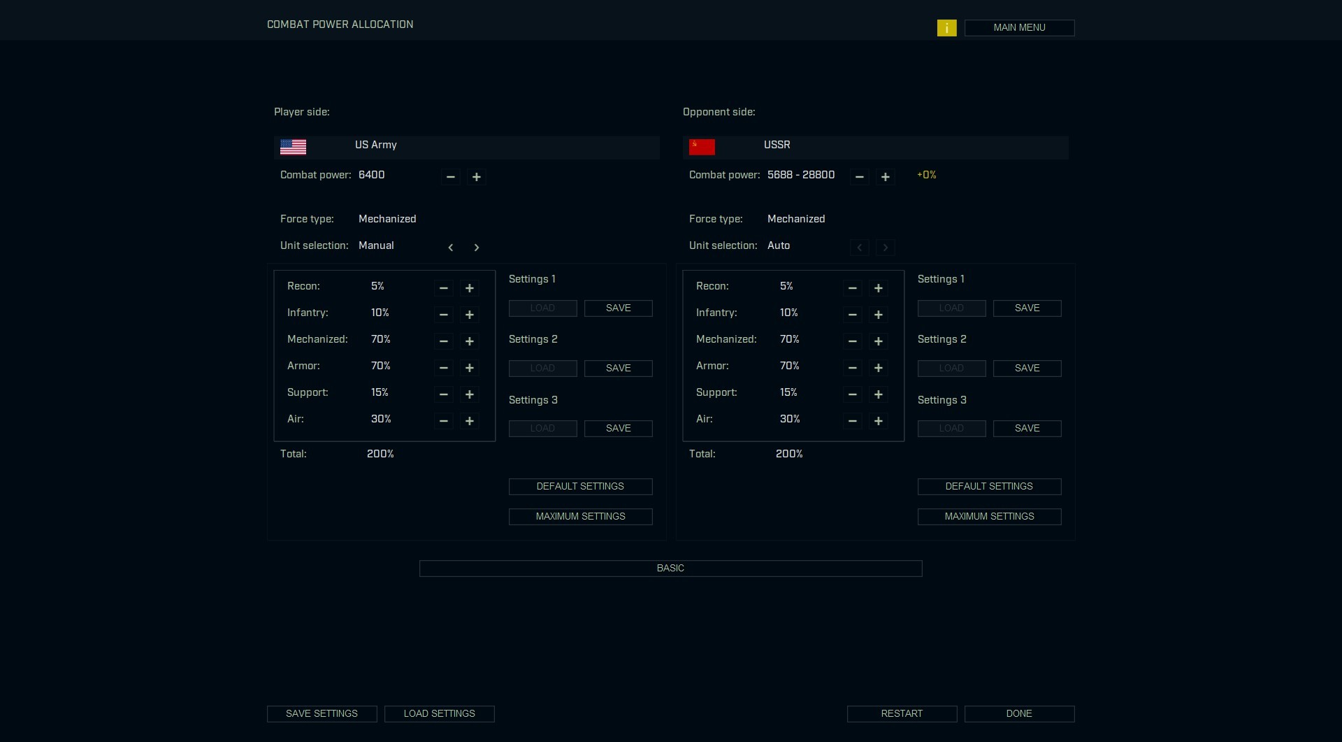 The setup phase, once you get to that screen, is that you can manually set up both sides… or automatically set up both sides, or any combination thereof. I like to manually choose my own and let the computer pick its units for their side. (That’s just me so that I have an idea of what forces I’m going to war with and I have no idea what my enemy has chosen to stand up to me).