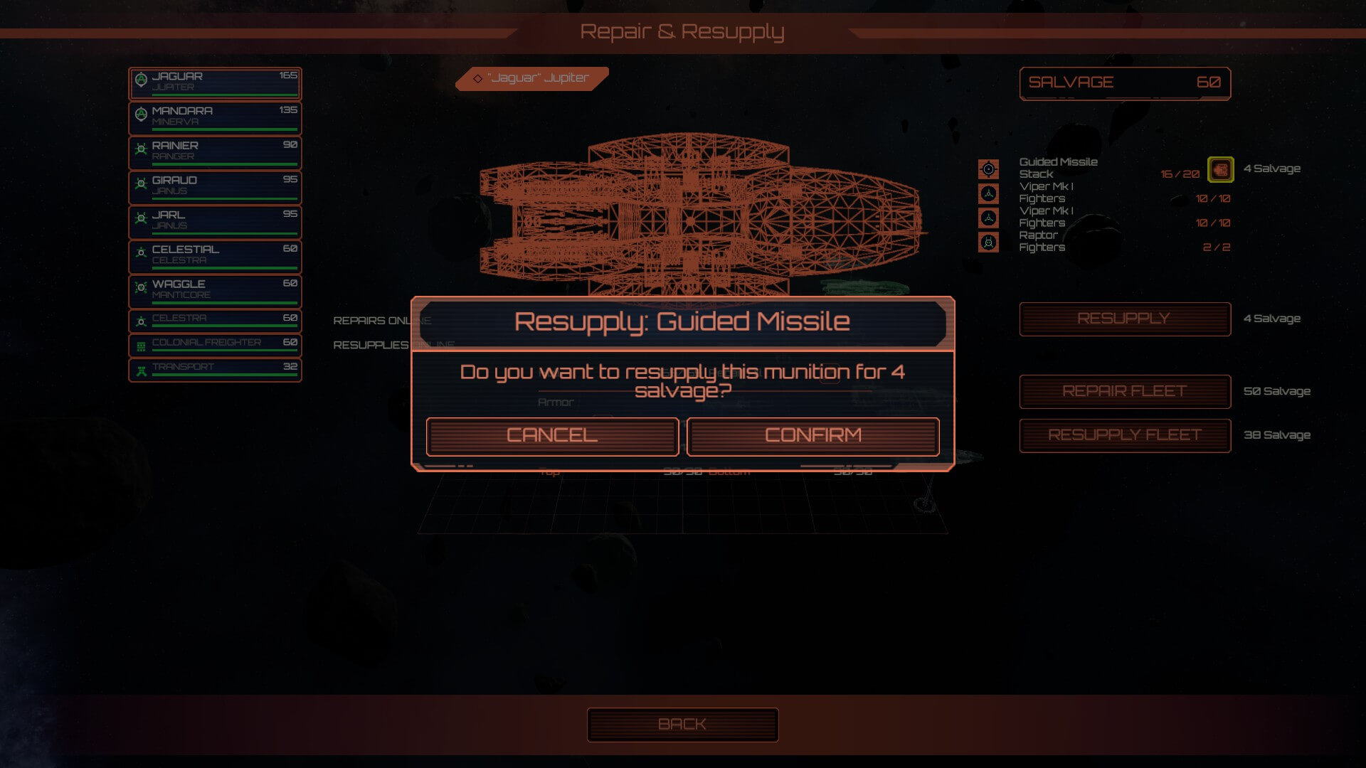You have limited resources to use between jumps for repair (you might get some salvage when you jump), plus your ships aren’t back to capacity like they are after a fight in the campaign. The whole point is to see how far you can get — most importantly, with how many survivors are left by the time you reach Caprica… if you make it that far.