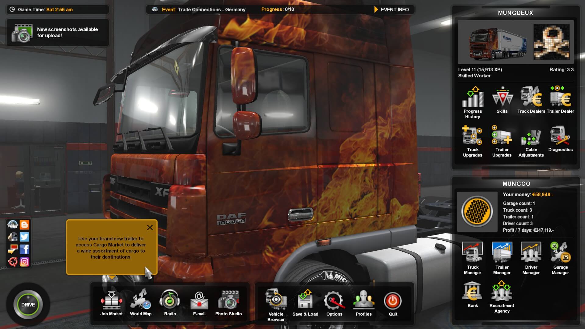 Just as has happened before, I’m in the middle of a review and a contest for World of Trucks crops up. I love these things. This time, the goal is to transport fifteen million tons of goods from Germany to ten different countries, with all runs having to be over 300 km.