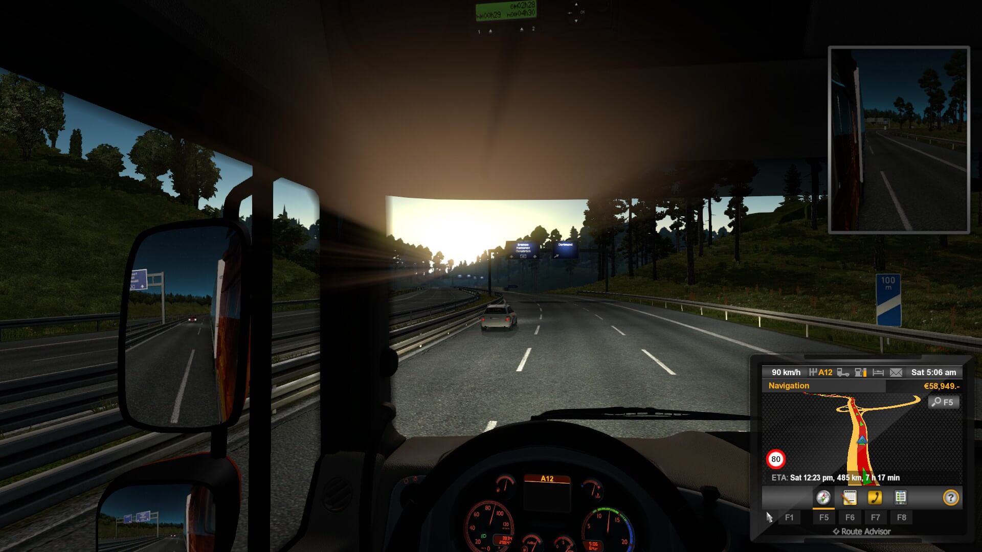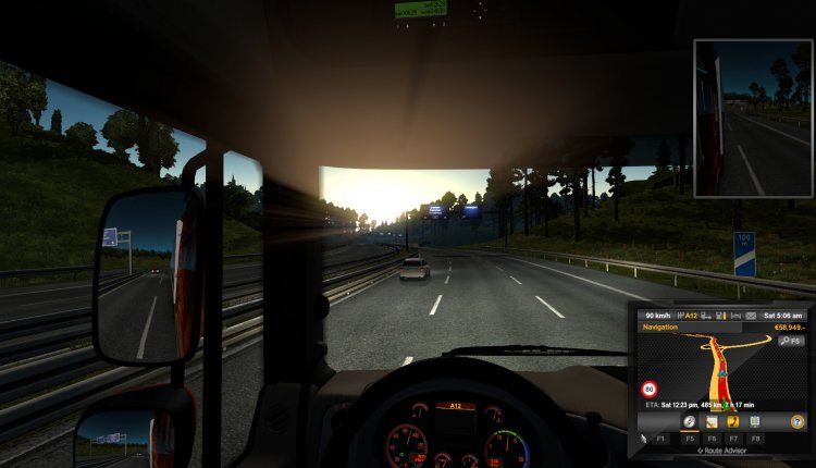As usual, the trip started in the wee hours of the morning — I’ve made this run before with a variety of different loads, so I wasn’t traveling into unchartered land or anywhere new or weird. Plus, as some of the screenshots will attest, I love sunrises (and sunsets) in Euro Truck Simulator 2.
