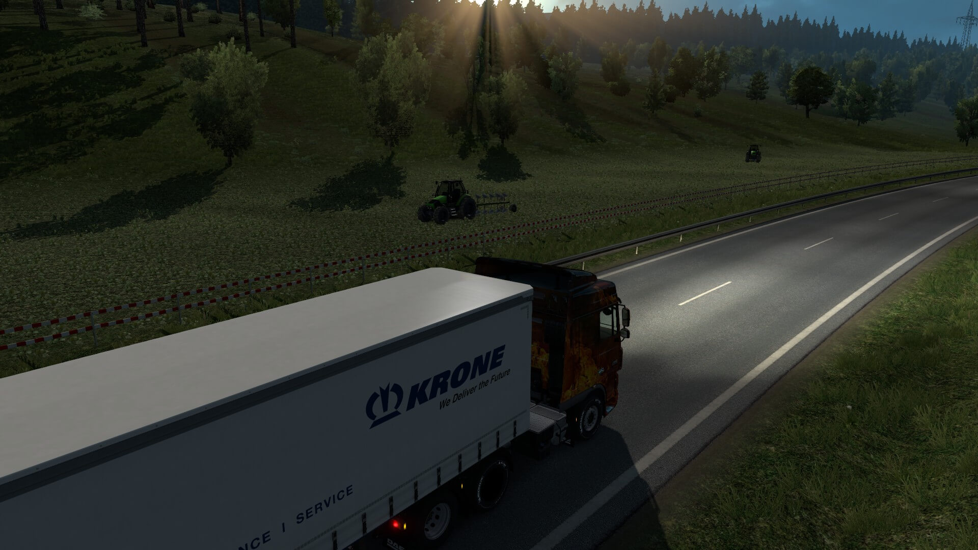 For some reason, every time I fire up either Euro Truck Simulator 2 or American Truck Simulator, the first song that pops into my head is The Eagle’s ‘Take It Easy’. However, it instantly doesn’t make sense because I’m always trying to take on another load, not loosen it — except for whatever I’m currently hauling. The latest DLC for Euro Truck Simulator 2 is the Krone Trailer Pack. For the uneducated *cough* <especially us Americans>, KRONE Trailer is one of Europe’s major vehicle and machine producers. The Krone Trailer Pack is not merely a variety of trailers to own, designate, keep track of, etc, it also adds a lot more to the game itself.