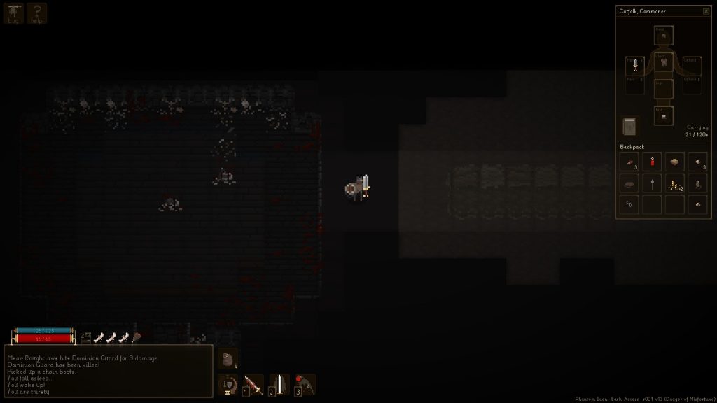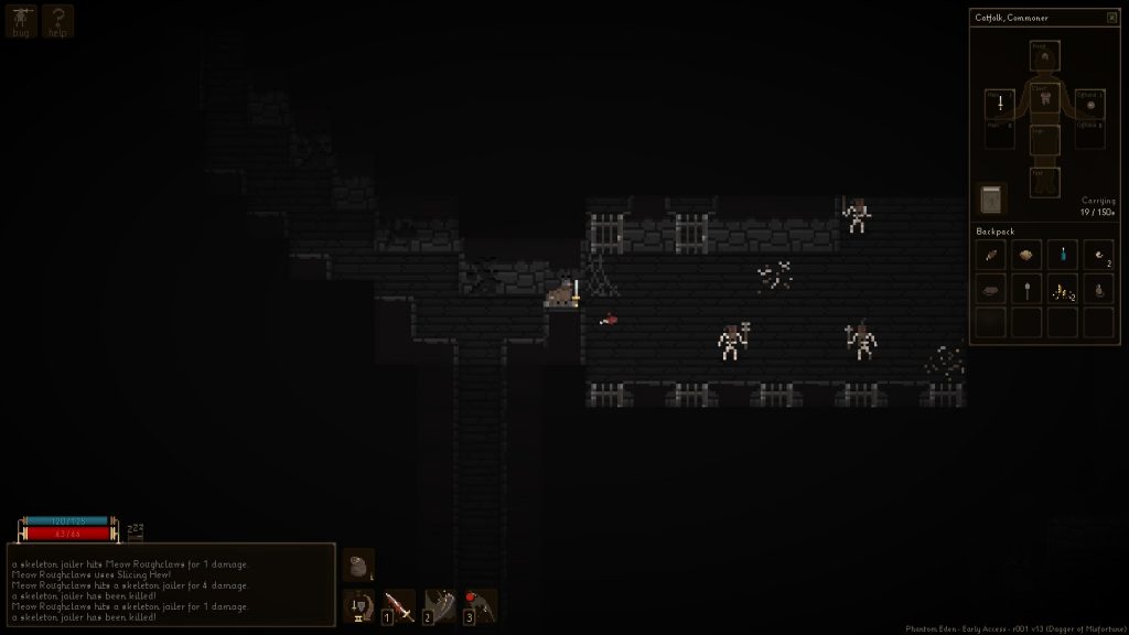 Phantom Eden, from Detocroix Company, takes the traditional roguelike dungeon-delver and swaps around the focus into one of sustenance and interaction, over getting a big sword to hit bigger things to get a bigger sword or die in a stinking pile at around the same depth six times in a row. With extra focus drawn to weapon influenced skills, healing, resting and eating, as well as assembling your own weapons and armour, it’s difficulty comes through enduring the world, rather than conquering it.