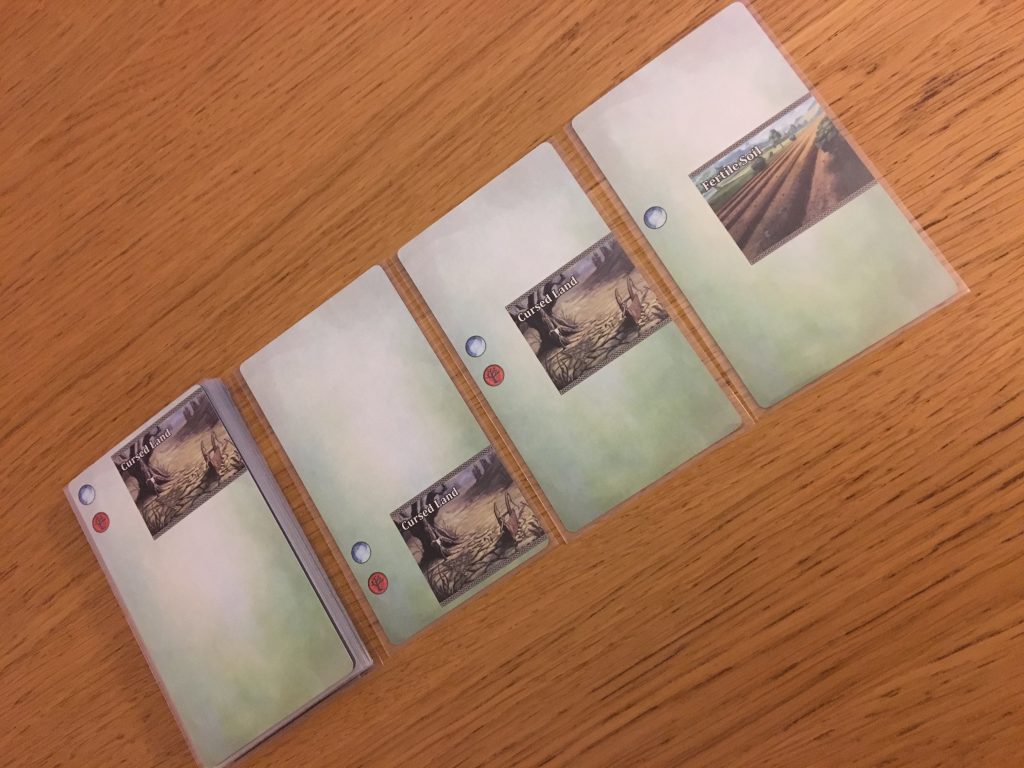 During the early stages of the game, you won’t have a great deal of resources, so the final thing you can buy (and will almost always have the mana to do so) is an additional fertile soil card. These weak but essential cards are kept in a separate pile and can always be purchased for a couple of mana. This option — plus access to no fewer than nine ‘more interesting’ upgrade cards at all times, as well as the Vale Cards — means that you’ll never run short of ways to enhance your deck and create the scoring engine that you think will win you the game.