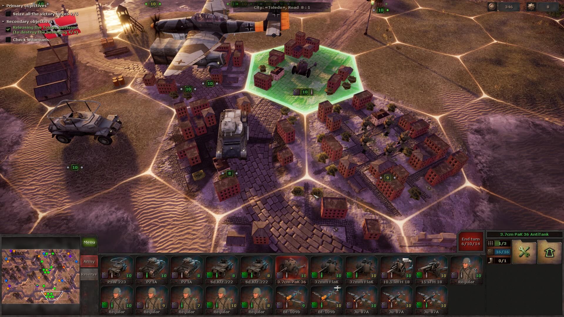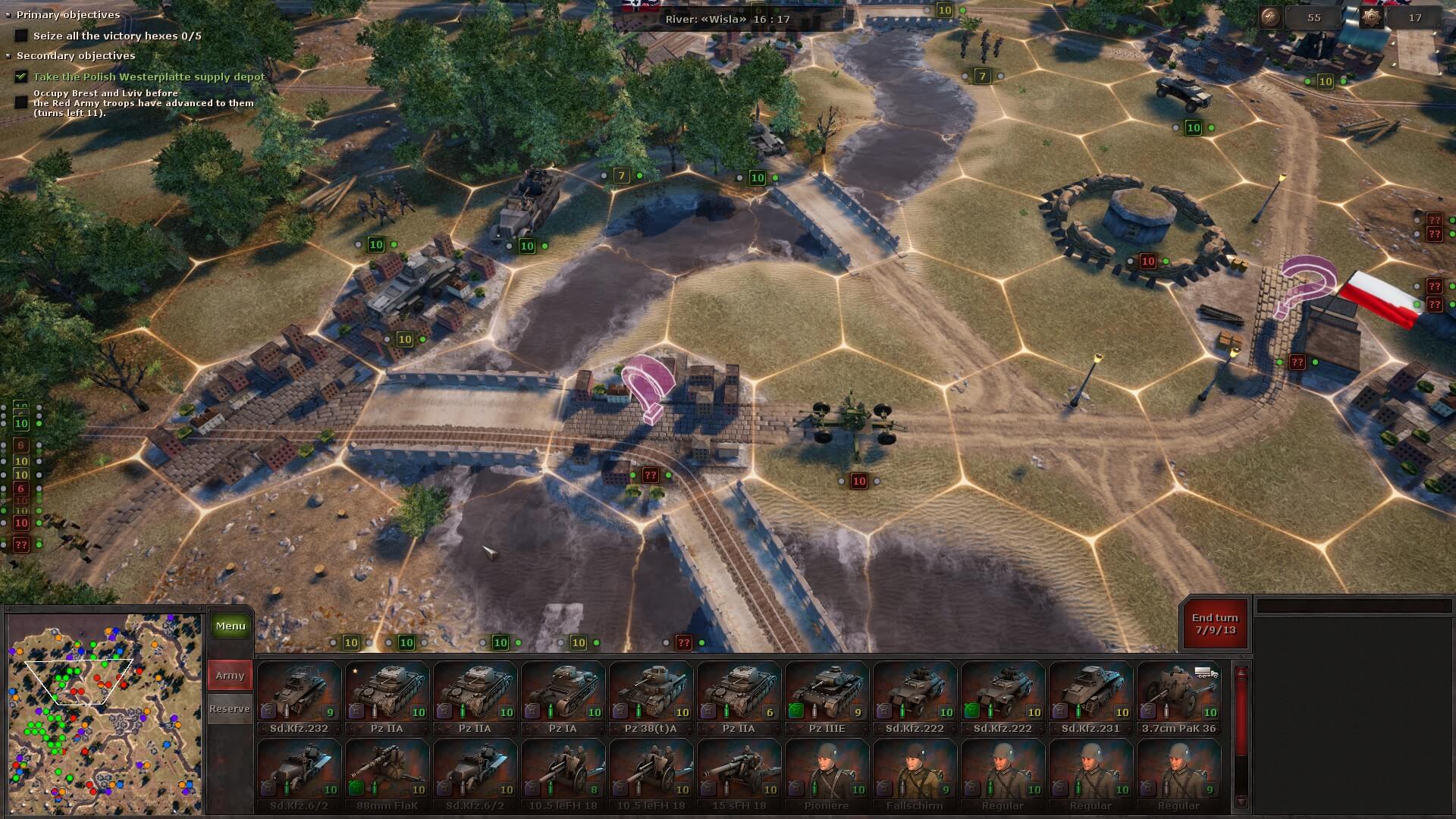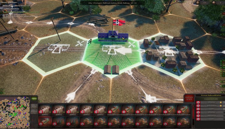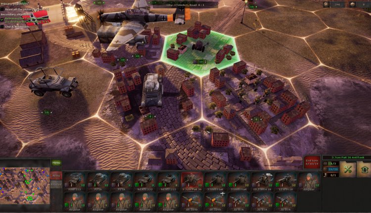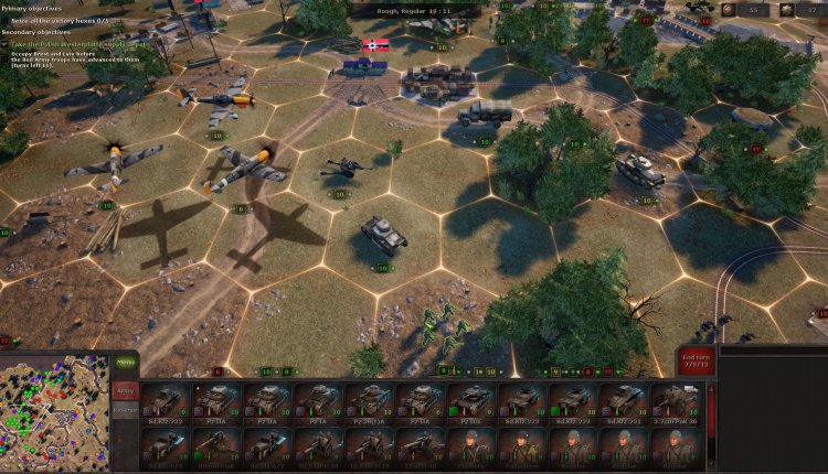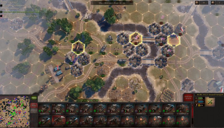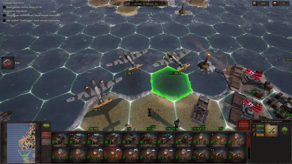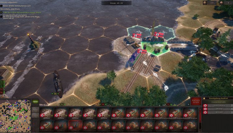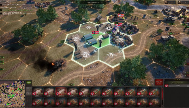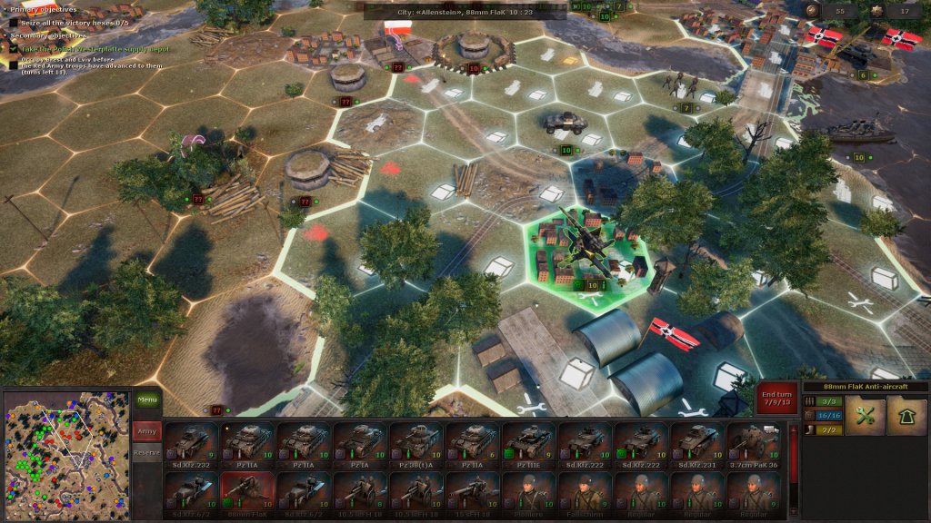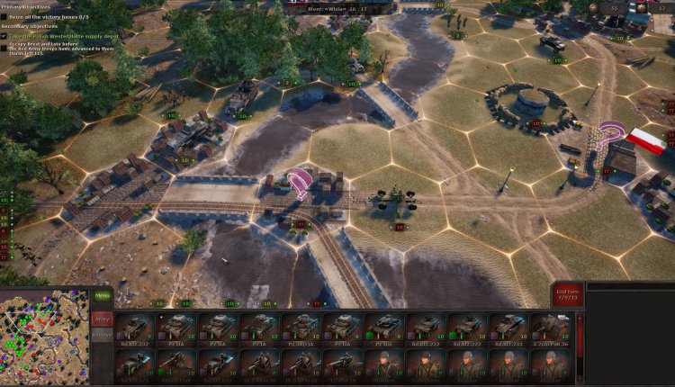 During the next battle, you might receive a few auxiliary units that can’t be moved, but you do have to deploy your own. There’s always a briefing to tell you exactly what you need to do and, sometimes as a secondary objective, in how many turns. Plus, the victory hexes are always highlighted, so you at least know the strategic positions you need to take.