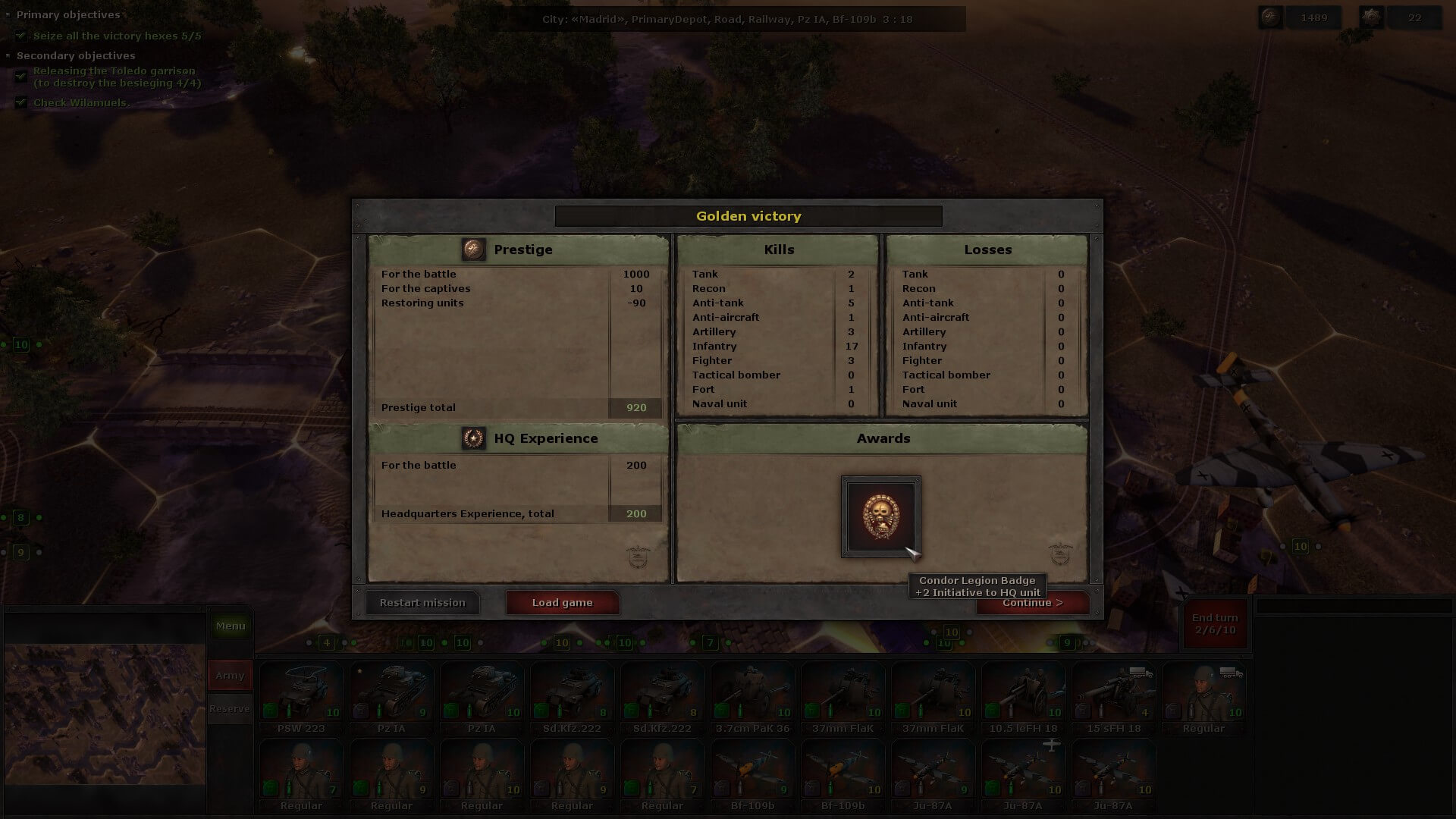 Between scenarios is where hardcore decision-making comes into play. You’ve earned a certain amount of points during the last mission — including Headquarter Points, which now come into play. How you spend them is where the real brain-wracking begins. Some units are eligible for promotion, which gives them additional benefits. You might want to upgrade some units to larger, more developed ones (e.g. a Pz IA to a Pz IIA… or even higher/better). Maybe you want your anti-tank to be mobile, so turn your 3.7cm PaK 36 into a ‘real tank’ hunter, a PzJgd I? The possibilities are almost endless, but your finances are definitely not. You even have the opportunity to buy new Core units. Sure, you skimp on the promotion and upgrading of your established ones, but maybe you need an extra artillery piece or tank or plane? It’s lonely at the top and all of the responsibility for the next engagement rests squarely on your shoulders. But, hey, no pressure.