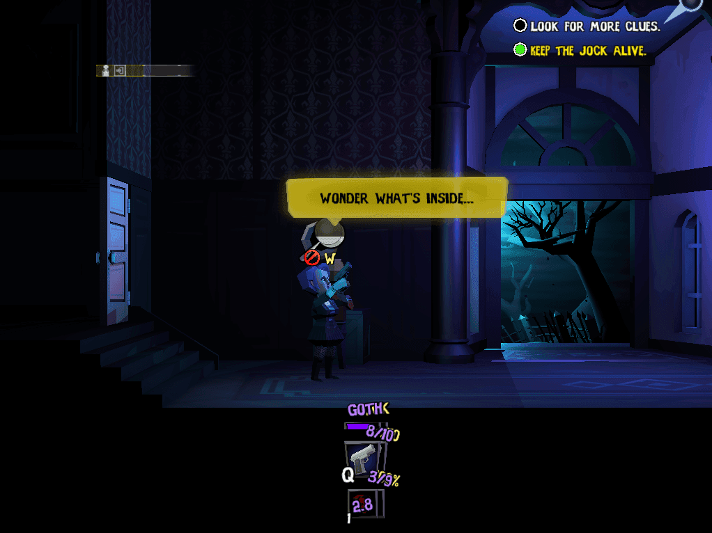There are also sometimes people lurking inside the house, hiding from the monsters that live inside — and they are happy to join your team as long as you have a spare slot! As you play your team of characters, you can control each individual’s attack and special abilities with various keys on your keyboard or controller. You can also switch which person stands at the front of the line in the inventory menu. Keeping an eye on everyone’s health and prioritising the person who is key for the mission will keep you busy as you explore the procedurally generated rooms of this haunted house.
