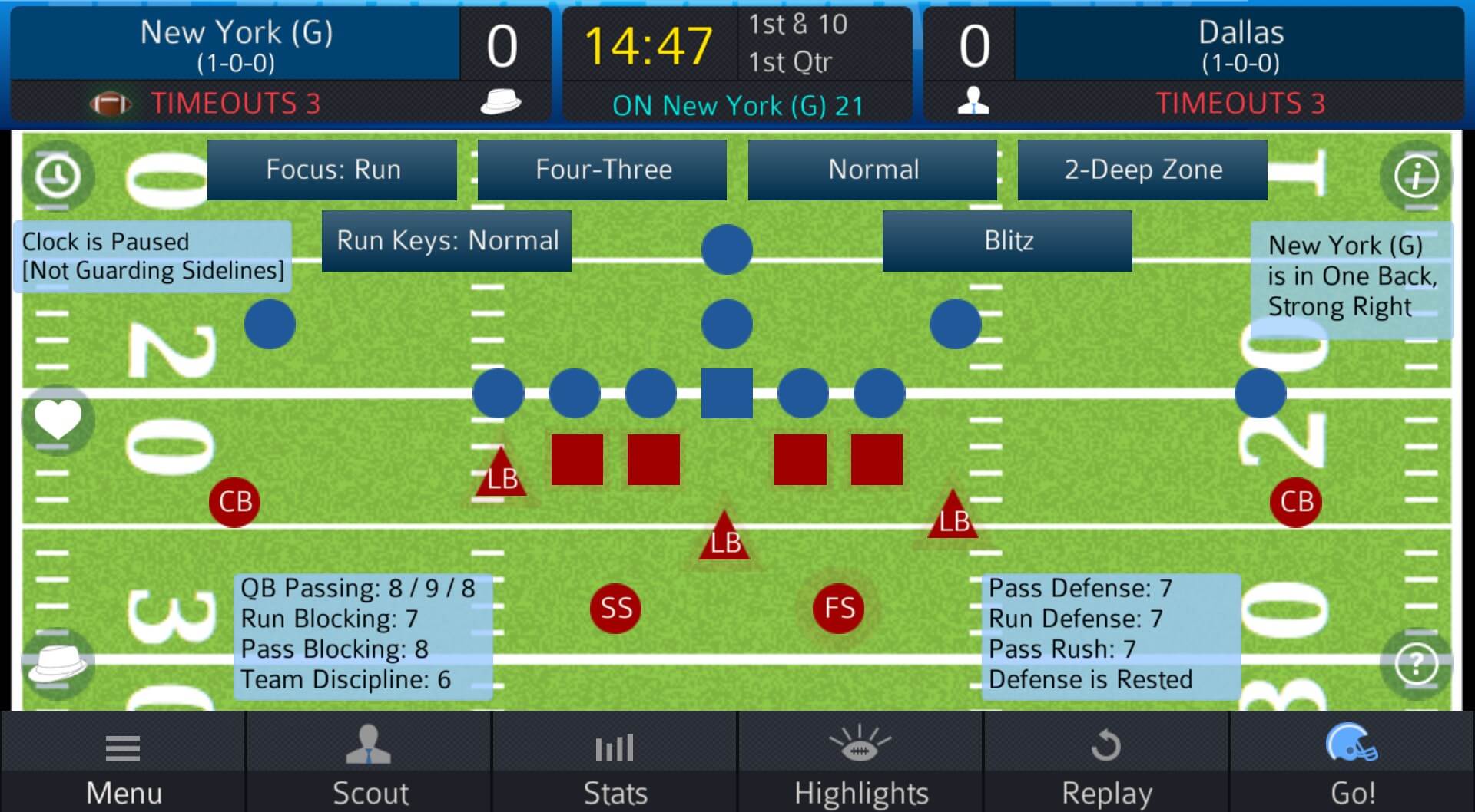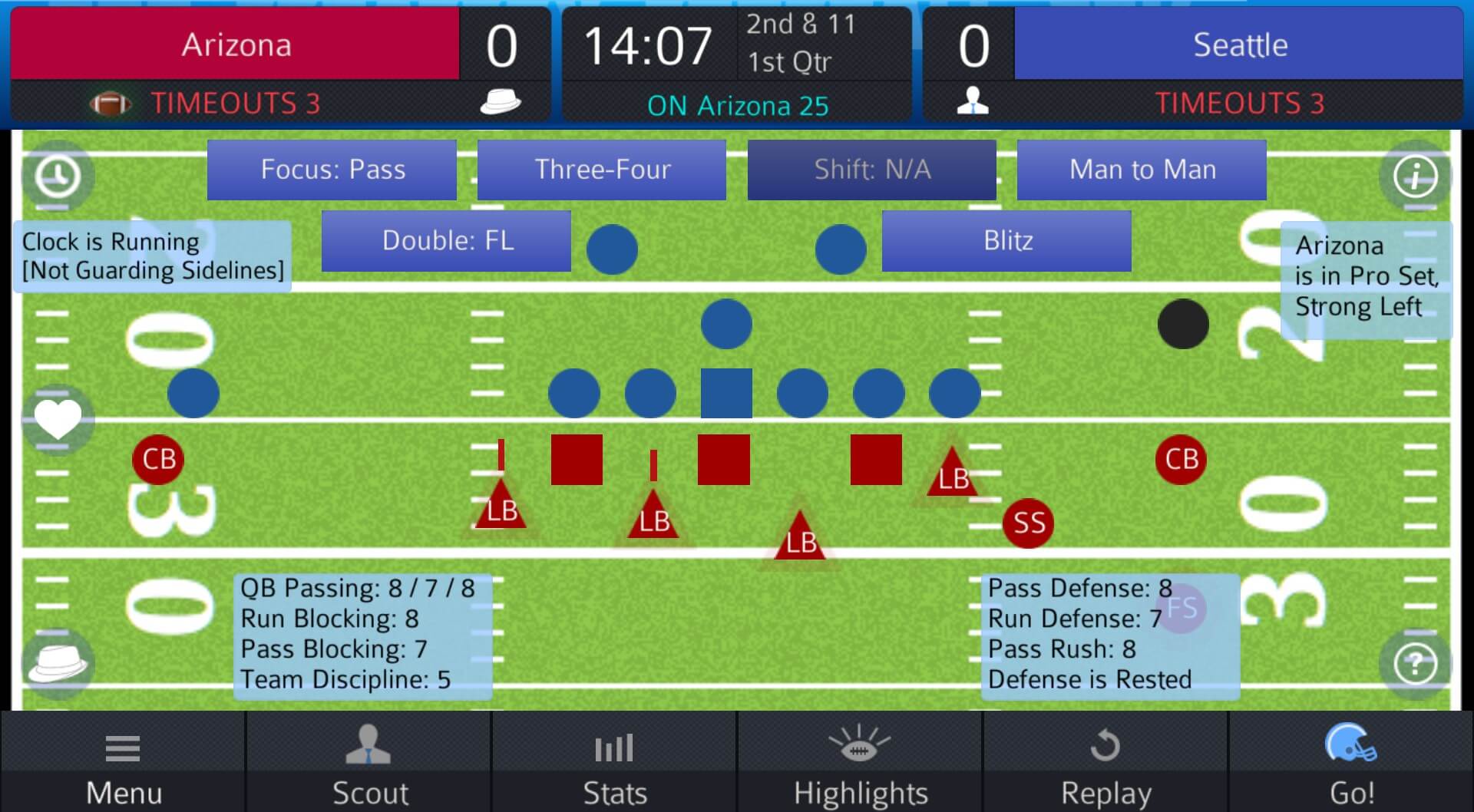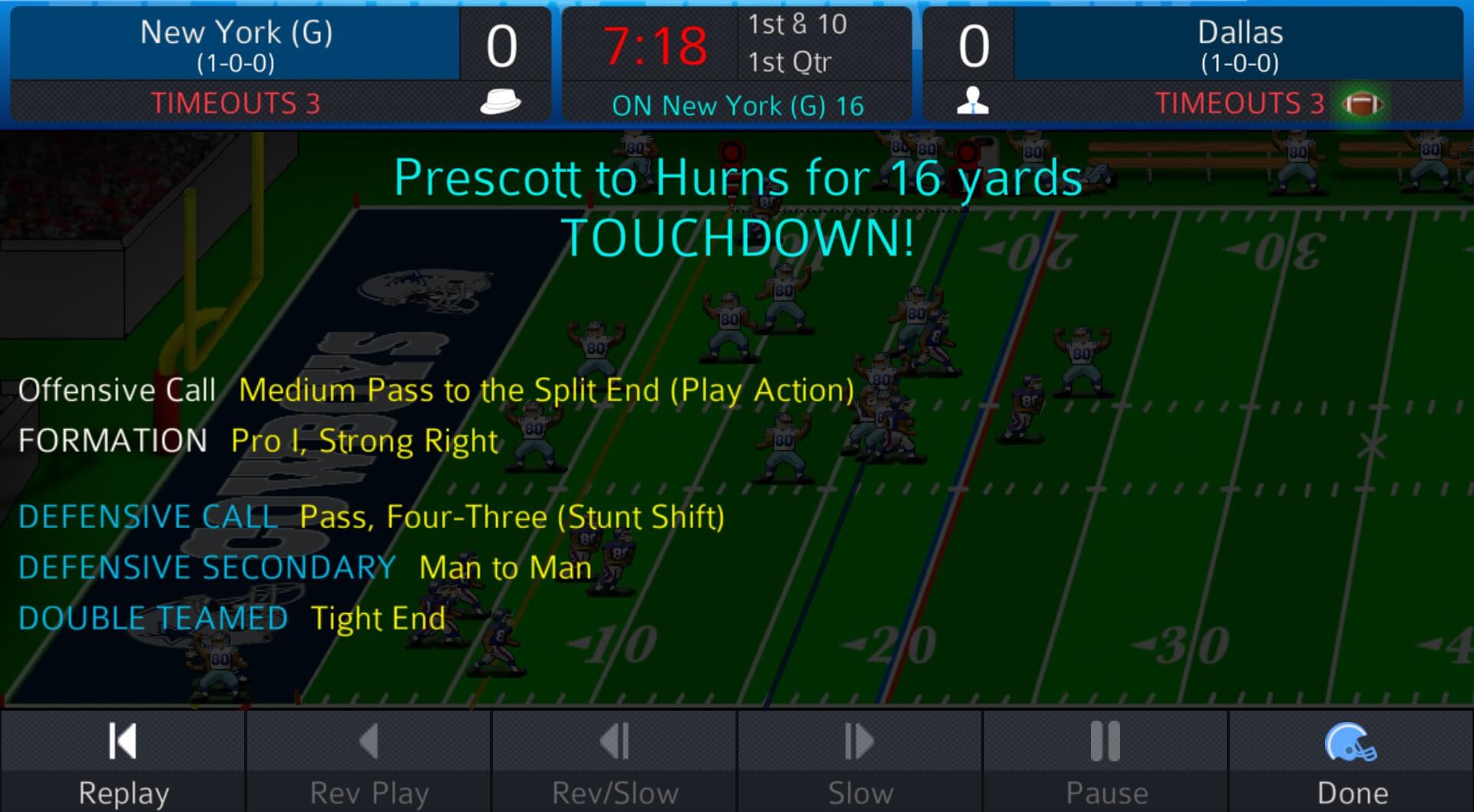 One final note about one of the positively best aspects: the AI watches and learns how you play! So that flanker reverse on third and two isn’t going to work much after the first time or two you call it.