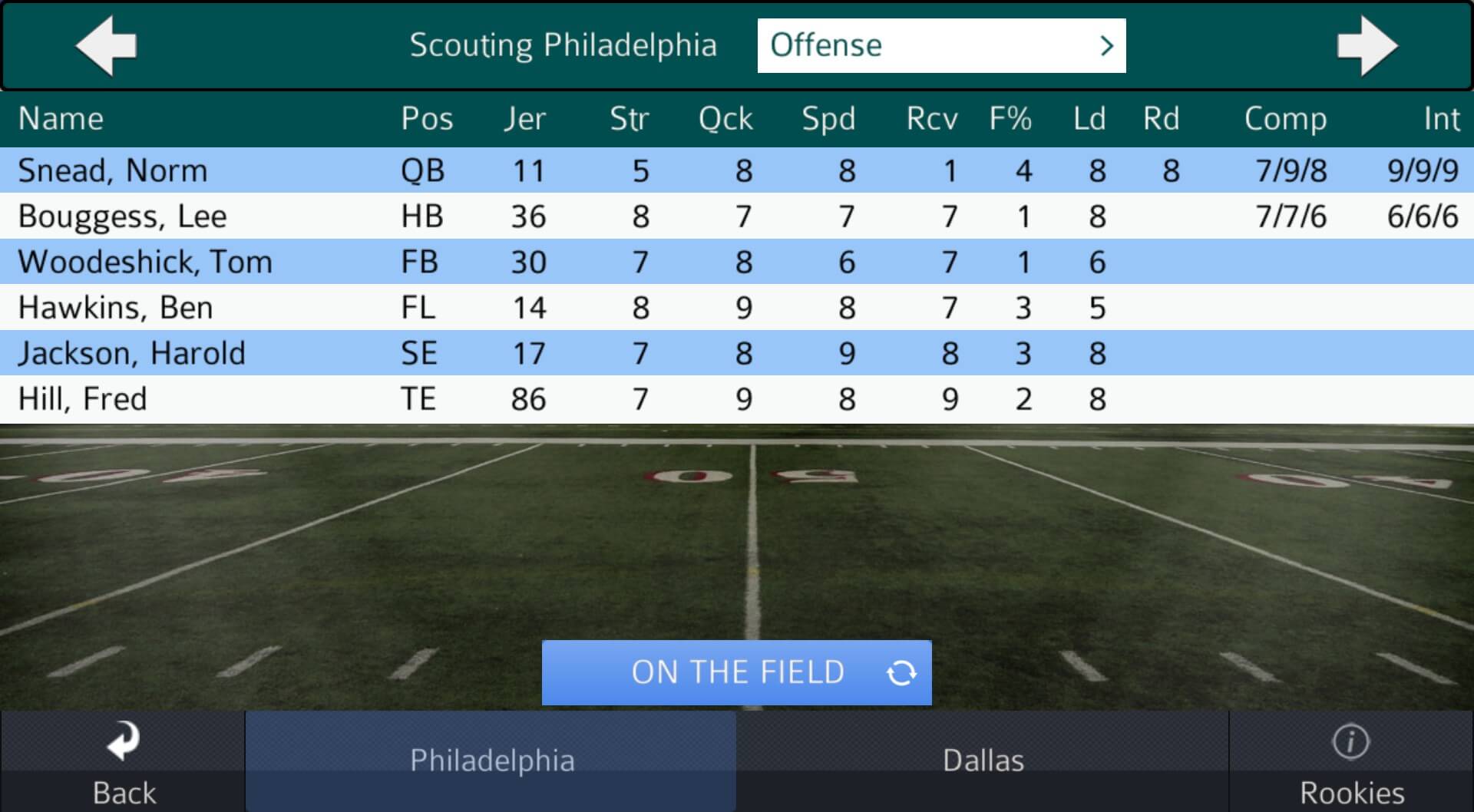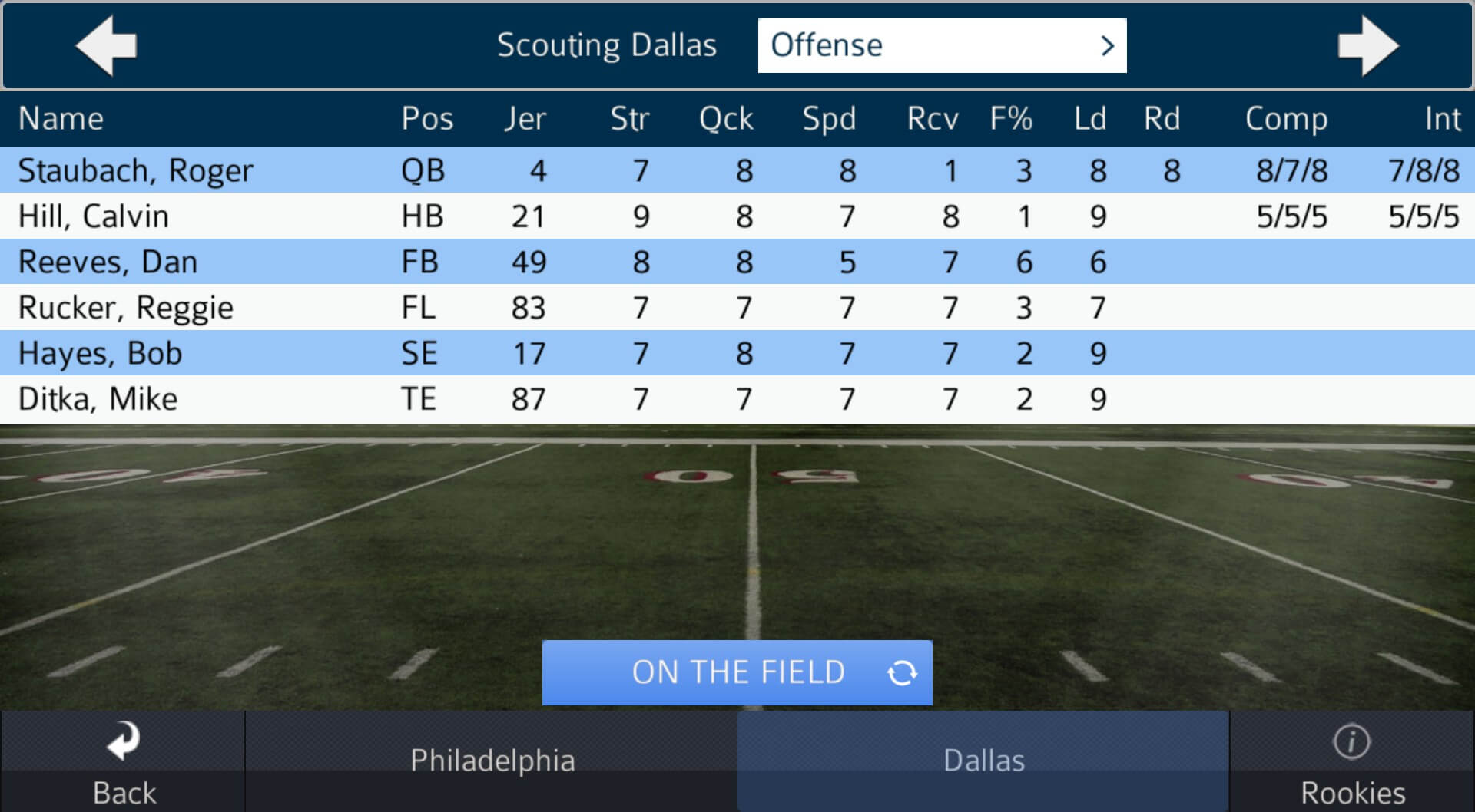 The customization possibilities in Pro Strategy Football 2019 are completely insane. Those previously listed are just a few of the rules. The outstanding part is being able to tailor the leagues, uniforms, fields, etc. to your own personal tastes. You have complete control over the rosters, player stats, home and away uniforms, field and endzone logos — hell, even the weather. You can make virtually any team from any era look exactly like you want them to. You can make any teams and leagues from completely fictitious to college to NFL. Then, whatever you create, you can share them with everybody else. One of the first combinations I downloaded was the 1970 NFL to use with modern uniforms.
