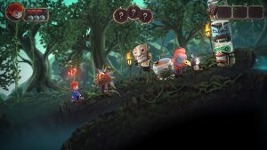 The game is made with the Unity engine which is a unique choice for a side scrolling platformer. Everything has a good fluidity and the characters never clash with the background or foreground. The whimsical fantasy creatures you fight also shine with the little details. The glowing eye of an eyebat as its just about to shoot a fireball, the stitched masks of Tiki rats. It’s these little things that give the game quite a bit of life.