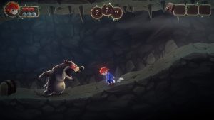 The game is made with the Unity engine which is a unique choice for a side scrolling platformer. Everything has a good fluidity and the characters never clash with the background or foreground. The whimsical fantasy creatures you fight also shine with the little details. The glowing eye of an eyebat as its just about to shoot a fireball, the stitched masks of Tiki rats. It’s these little things that give the game quite a bit of life.