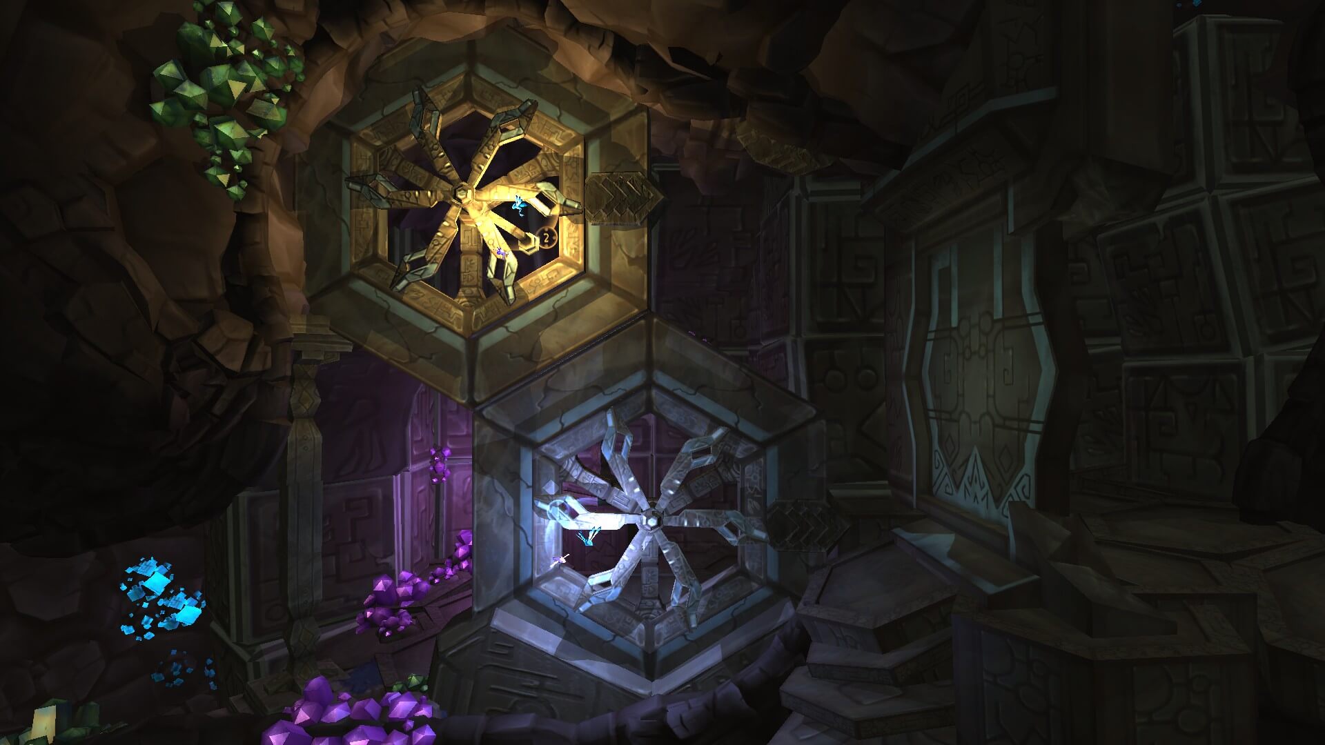 That’s right, splitting them up invites a new aspect to the gameplay where you split your Lumini into two groups and overcome puzzles to progress. Sometimes it’s just a simple pushing of two buttons with each swarm, but other times it can be more complicated, like pressing a button whilst simultaneously spinning a cog wheel. I won’t lie, this was quite a challenge and felt very hard to manage both areas at the same time…at least on a keyboard and mouse, maybe this is where the controller would shine.