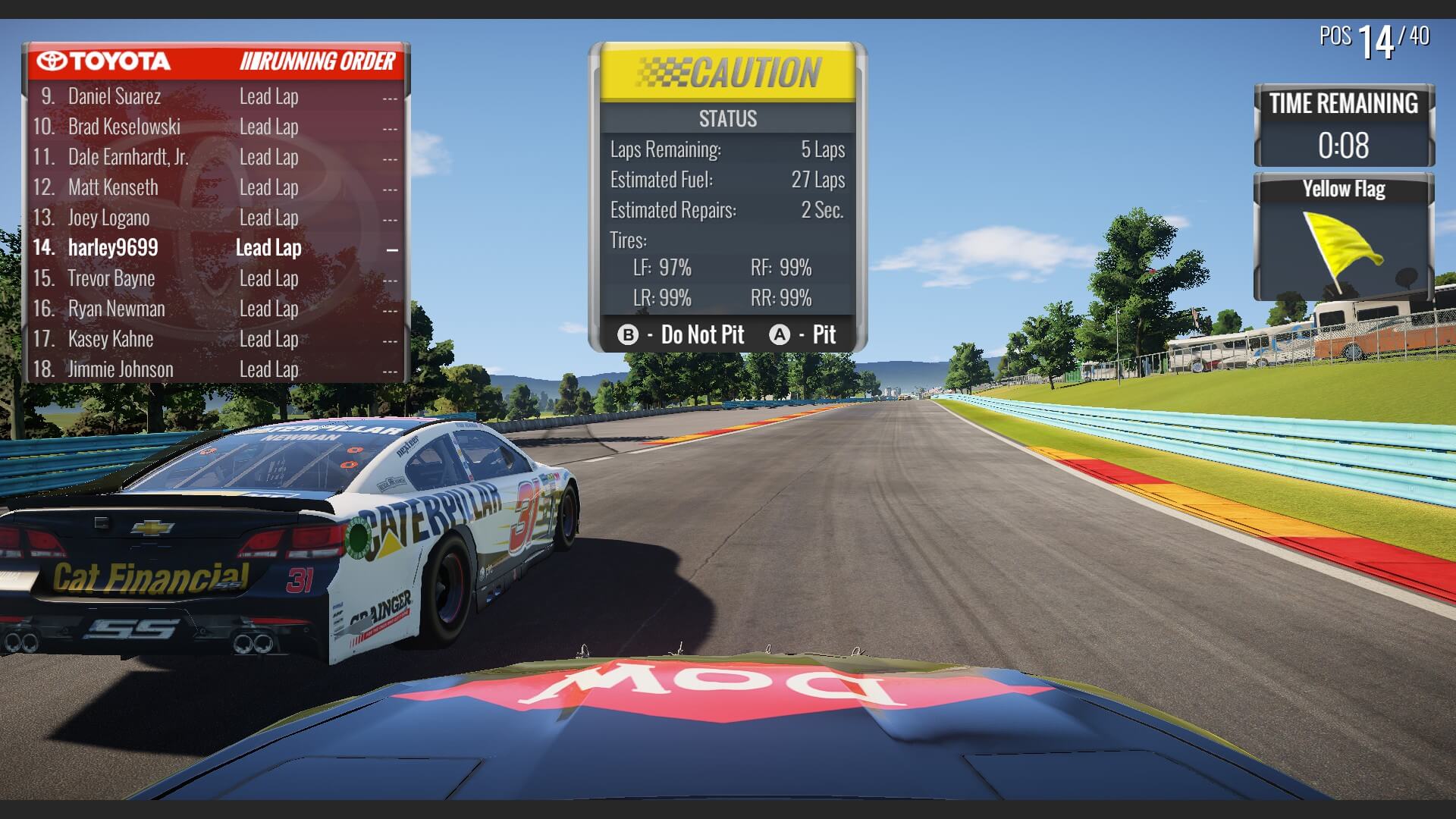 Or do we? Huge note here: if you choose to Race Only, without any qualifying, you will start every race in the last position (meaning 32nd in the Camping World Truck Series or 40th position in the XFINITY and Monster Energy series). I am a competitor, I like to at least have the possibility of a victory each race. The only way for that to happen, while running abbreviated races, is to qualify. With the game cranked up to even a reasonable level (as I have described my preferences above), I found it impossible to go from worst to first on even a 25% length race, much less a 7% or 13% one.