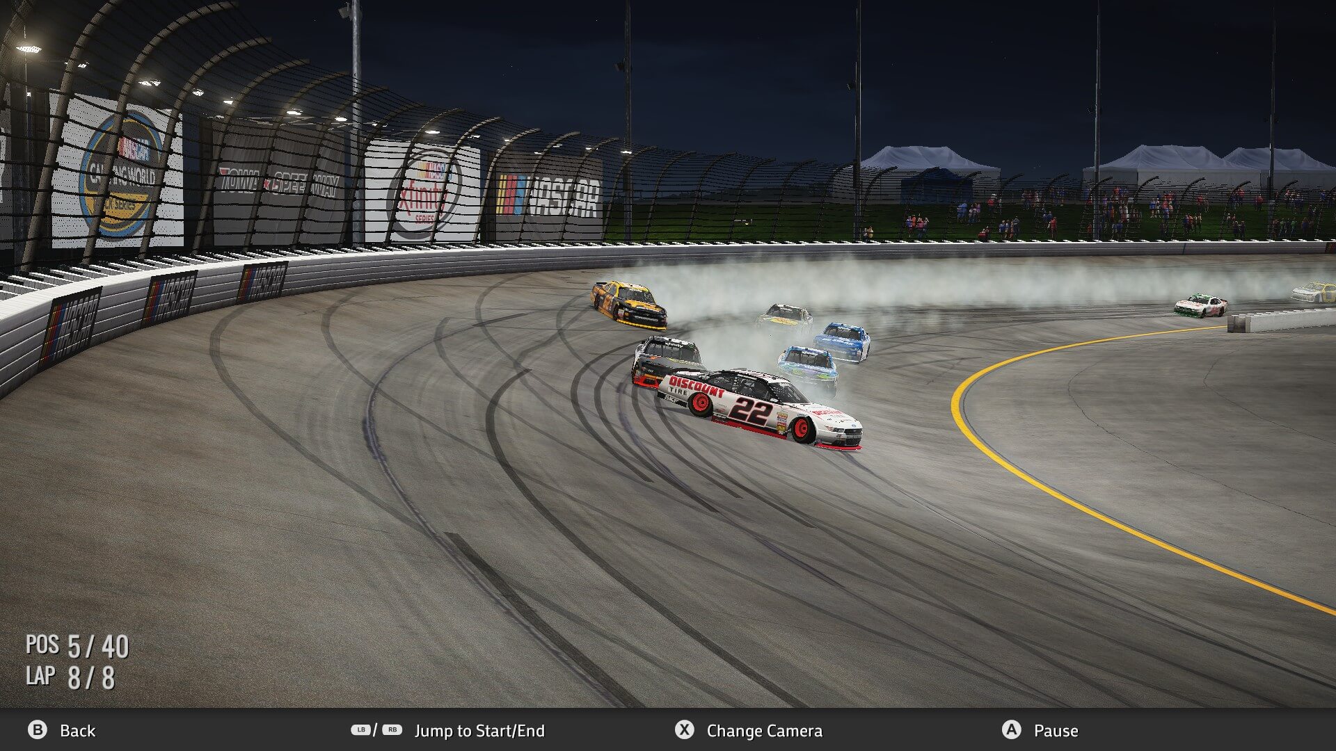 The absolute best parts of NASCAR Heat 2 are the personal, self-generating stories. I have way more anecdotes than the total number of races driven. Since I never was, nor ever will be, a NASCAR driver, a lot of ‘firsts’ happened for me. It is pulse-wrenching the first time I went three-wide at Bristol, four-wide at Daytona, and five-wide at Pocono (even the first race at the Tricky Triangle was pure heart-pounding fun). I quickly earned my Daytona Stripe (as well as Martinsville’s, Talladega’s—well, okay, I’ll admit I got a ‘stripe’ on every track). Plus, I found out the hard way that you cannot quite keep the throttle wide-open at Dover; and exactly how asymmetrical the oval is at Gateway. Also, make no mistake, the other drivers are every bit as aggressive as you are, while also mirroring your clean/maybe-not-so-nice tendencies.