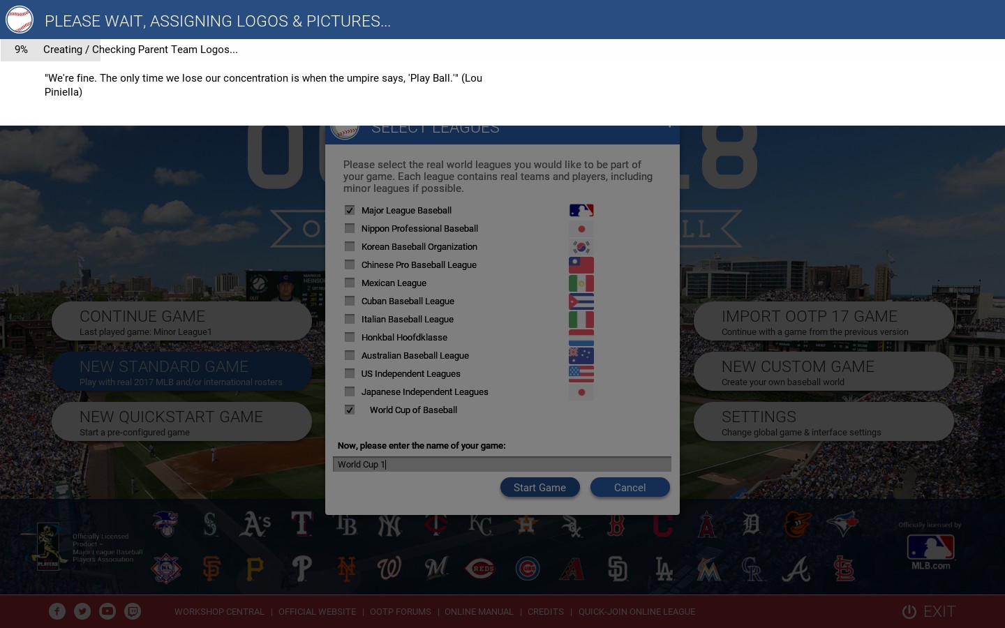While there will be literally thousands of choices to be made, I will have to make a few, right off the bat, in order to be able to come out swinging. [Oh no! it feels like I might be throwing out baseball puns]. If I want to play the latest (2017) season, the first thing I have to decide is which league I want to play in, from twelve (!) possible choices – in addition to the possibility to play in more than one at a time.