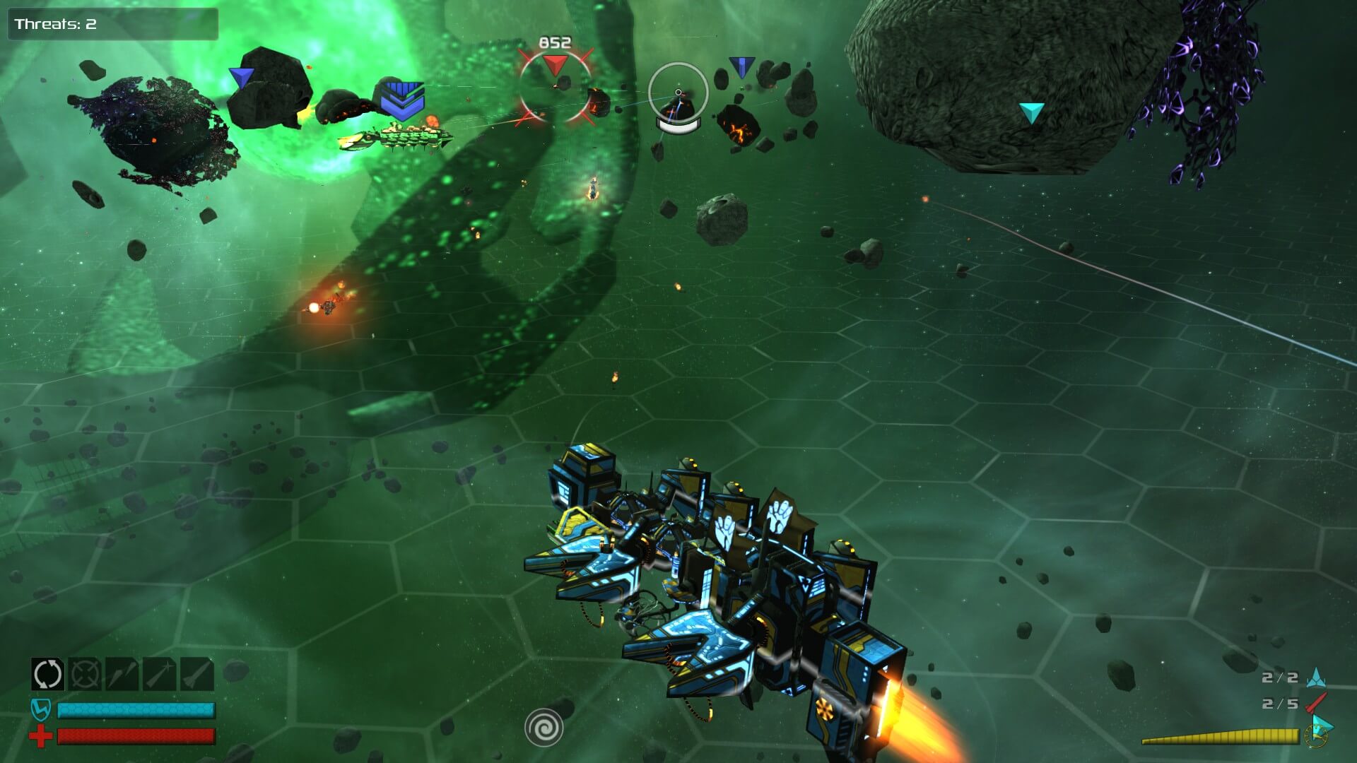 The purest element of Space Pirates And Zombies 2 (hereafter lovingly referred to as SPAZ 2) is the building of your mothership. All the ships in this game are built using a modular component feature. You are given The Mother Core, then you can add sub-cores, pick nose parts, elbow joints and various left and right wing pieces, as well as thrust engine parts onto your assemblage.