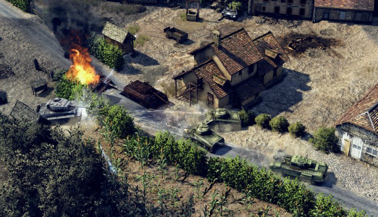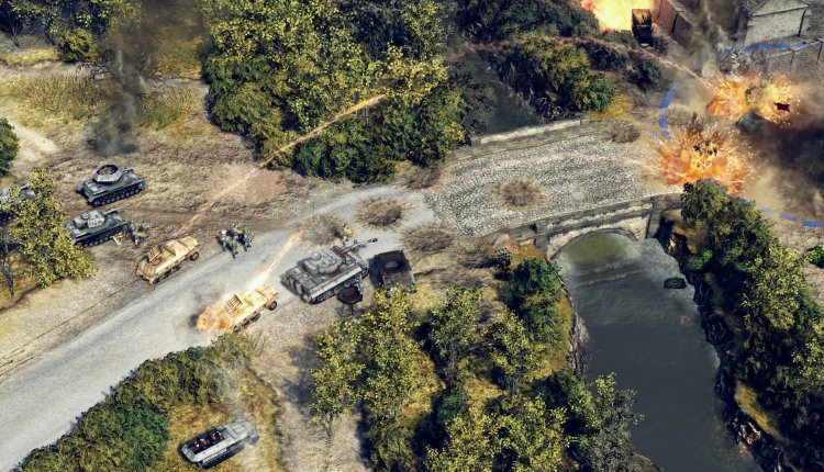Sudden Strike 4 definitely retains that multi-divisional aspect, with focus on both infantry and tank disciplines required by players throughout the three launch campaign missions. Satisfyingly, it’s more than possible to take out a tank with well-positioned infantry, be that using a mortar array or simply getting your troops to hurl grenades from the bushes. Even in the more complex later missions, infantry holding positions and using their manoeuvrability over tanks and artillery to move from cover-to-cover, scouting and manipulating the battlefield, is a key part of mission structure. It’s a game which, unlike the RTS boom of the 90s, doesn’t discard old technology — doesn’t end with tank and air-unit only missions. Indeed, the moments that stick with me the most involve the paper-thin infantry: commandeering abandoned enemy vehicles, taking up discarded artillery positions and even re-purposing civilian vehicles into glass chariots to wrap soldiers behind enemy lines and spot any weaknesses.