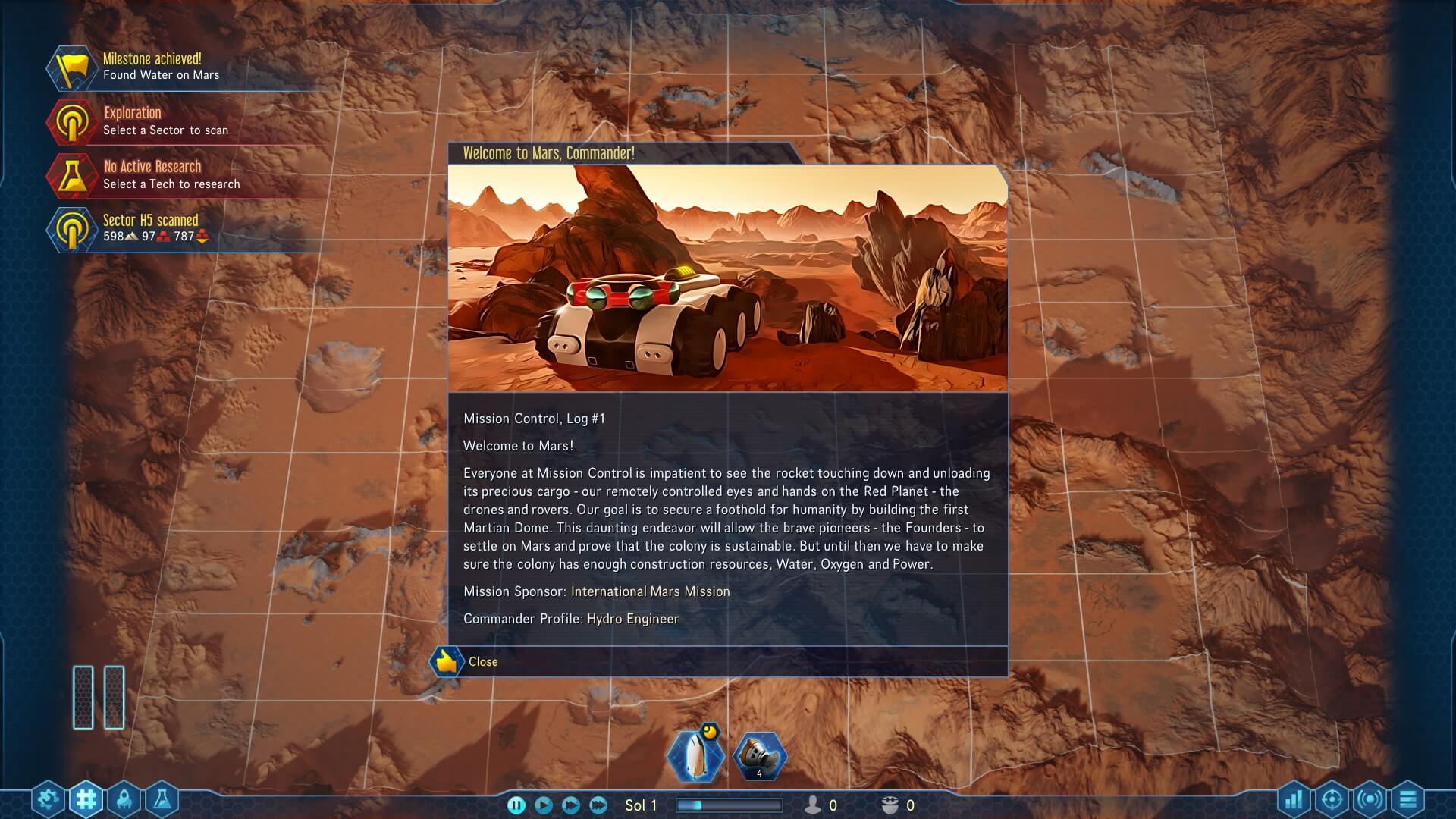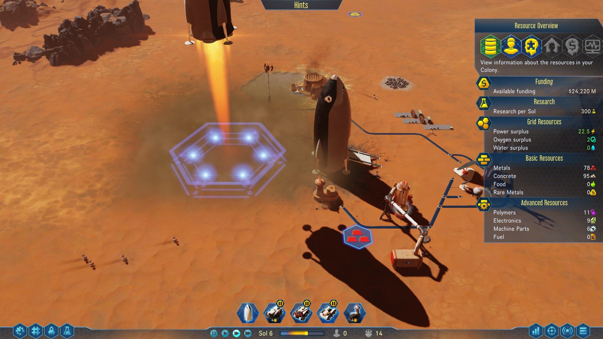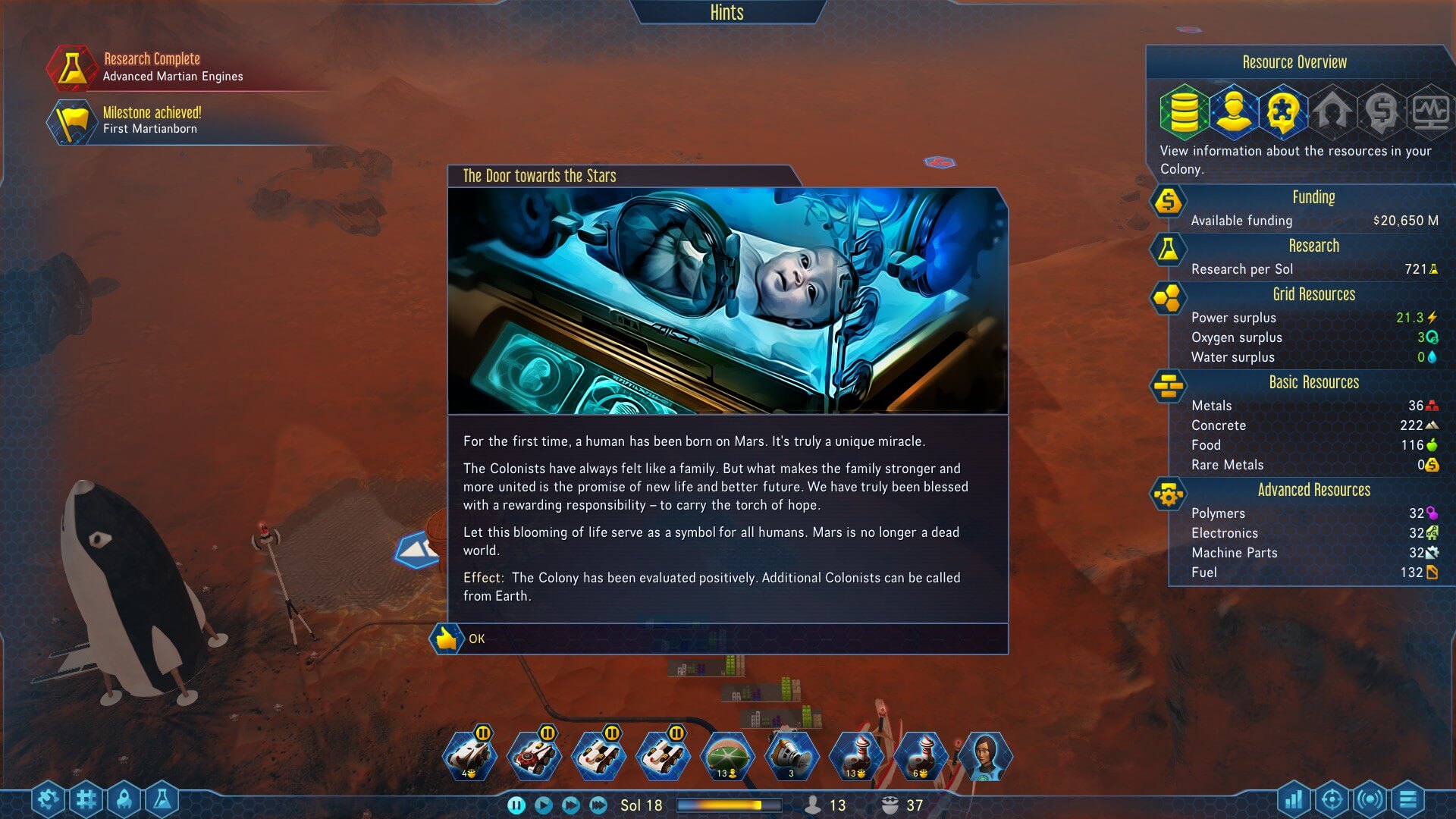 As a guy who got used to reading printed manuals during my 138 years of PC gaming, I actually read through all the hints before I began Surviving Mars. In retrospect, that was all quite unnecessary. One can easily fire up the game and go. The hints pop up whenever needed. If you try to build a dome too early, for example, Surviving Mars will literally tell you that you’re not ready — as well as tell you why it’s not time yet.