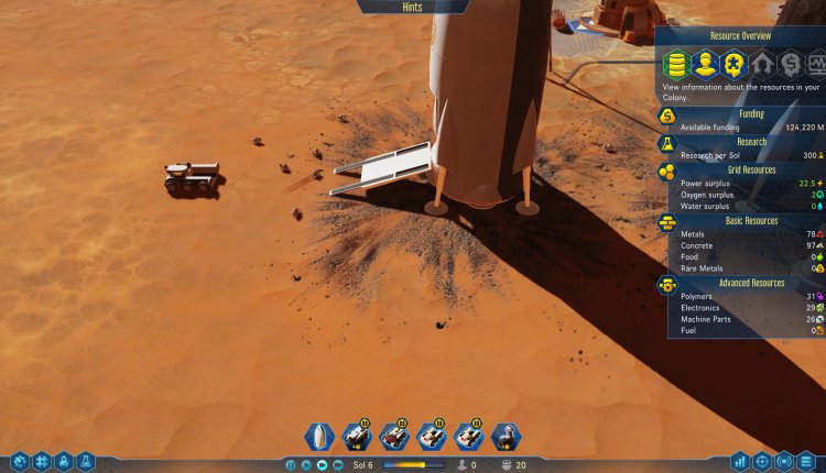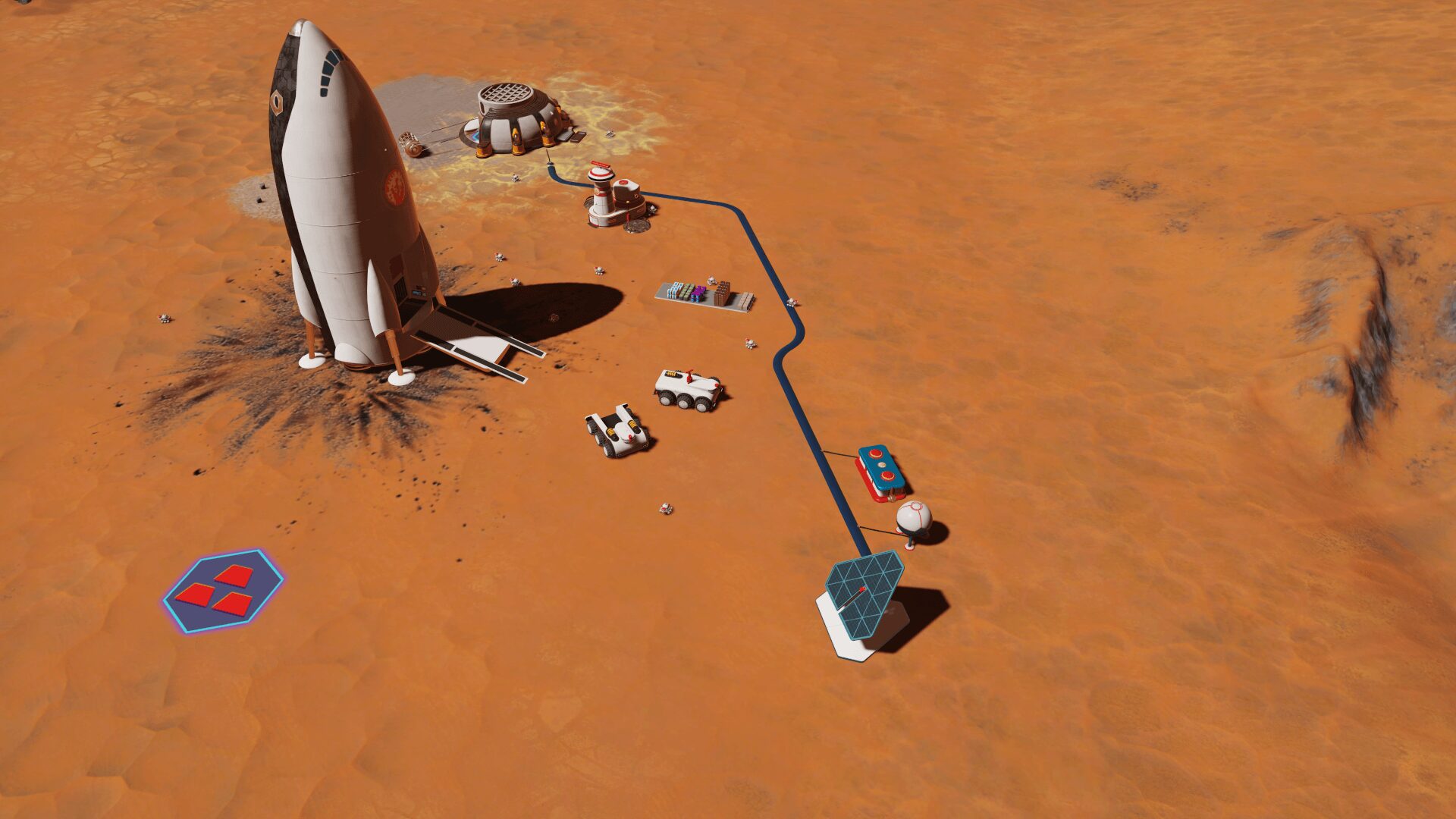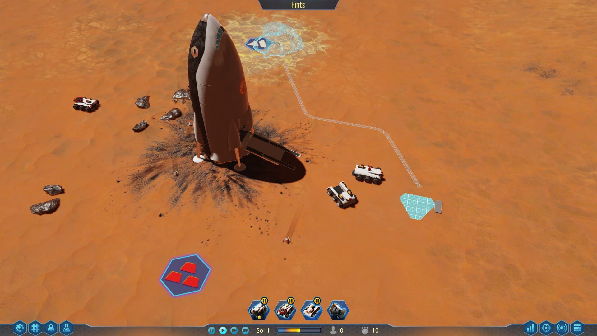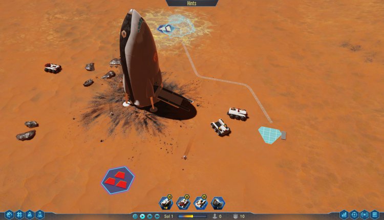 Since no infrastructure exists on the red planet, actual colonists cannot simply climb aboard a ship and fly to Mars. Your first rocket contains only drones as workers. Also supplied are three types of rover, but your drones will do the bulk of the groundwork for future pioneers.