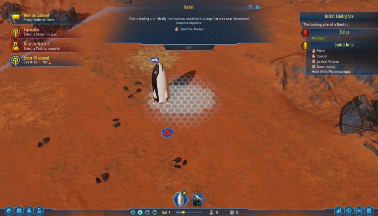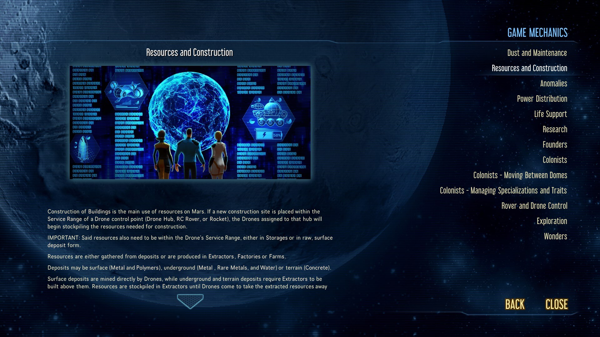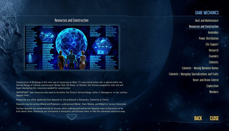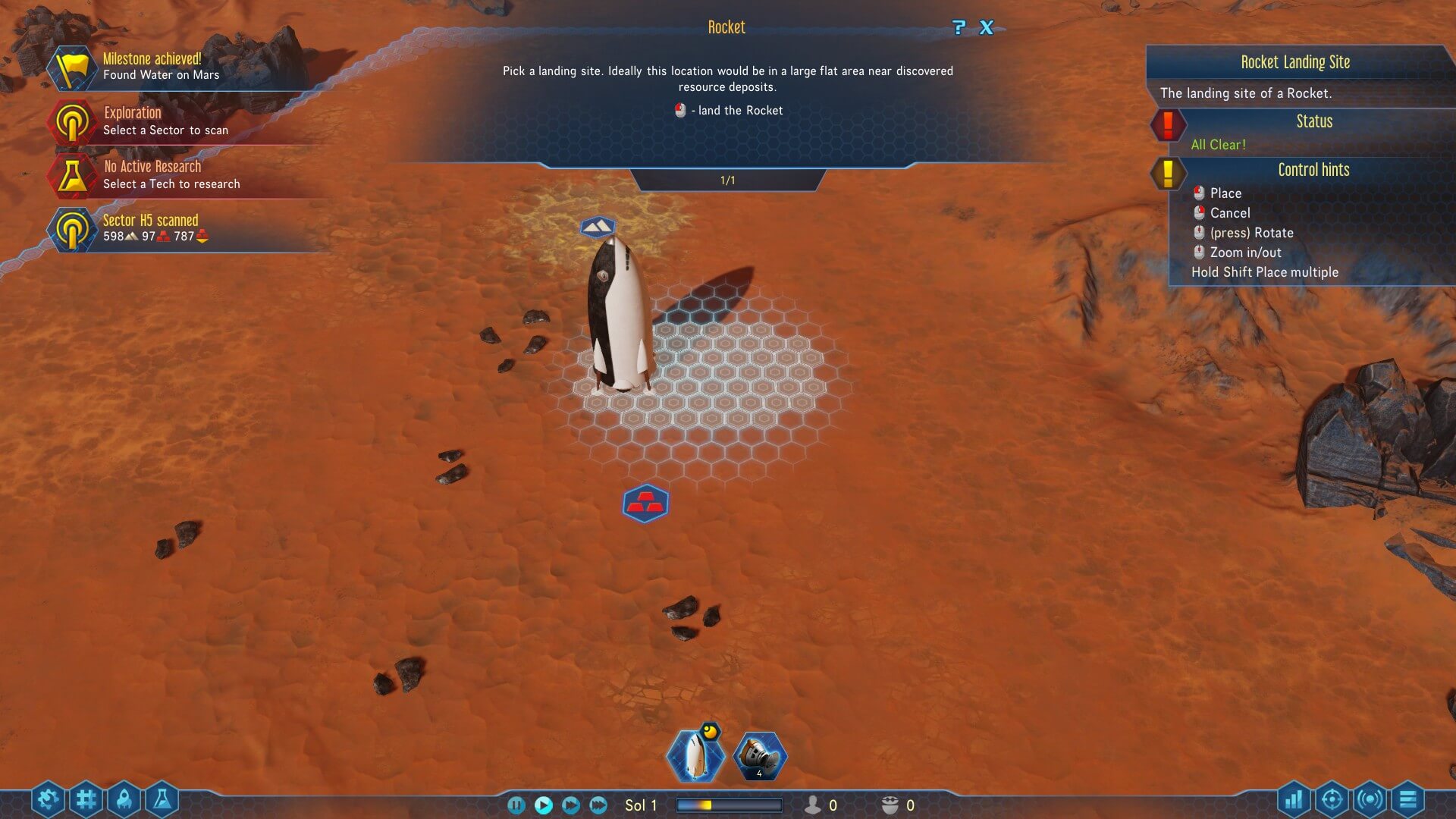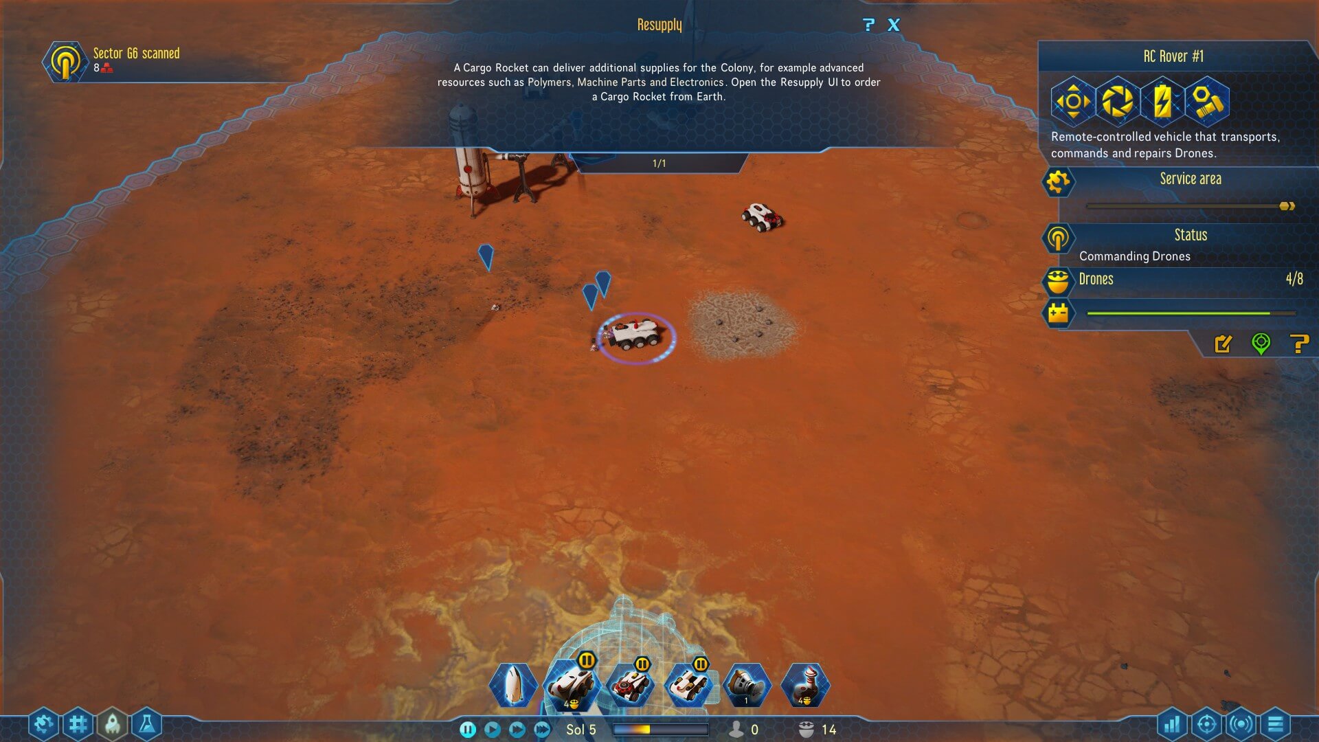 Since no infrastructure exists on the red planet, actual colonists cannot simply climb aboard a ship and fly to Mars. Your first rocket contains only drones as workers. Also supplied are three types of rover, but your drones will do the bulk of the groundwork for future pioneers.
