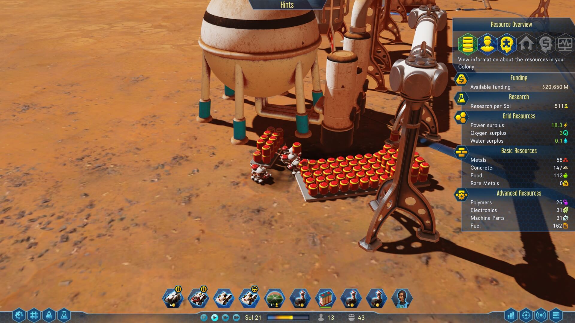 Preparing for human beings is not as easy as simply laying a couple of cables and a few pipes, either. People need all types of equipment in order to survive the harsh, Martian climate. While drones can plow through almost anything, citizens are all ‘needy and whiny’ (air quotes there). Your populace require food, oxygen and water to be built — all before even attempting to fly to the planet! All of these systems have to be in place and fully operational before a rocket-full of inhabitants can even consider going to Mars.