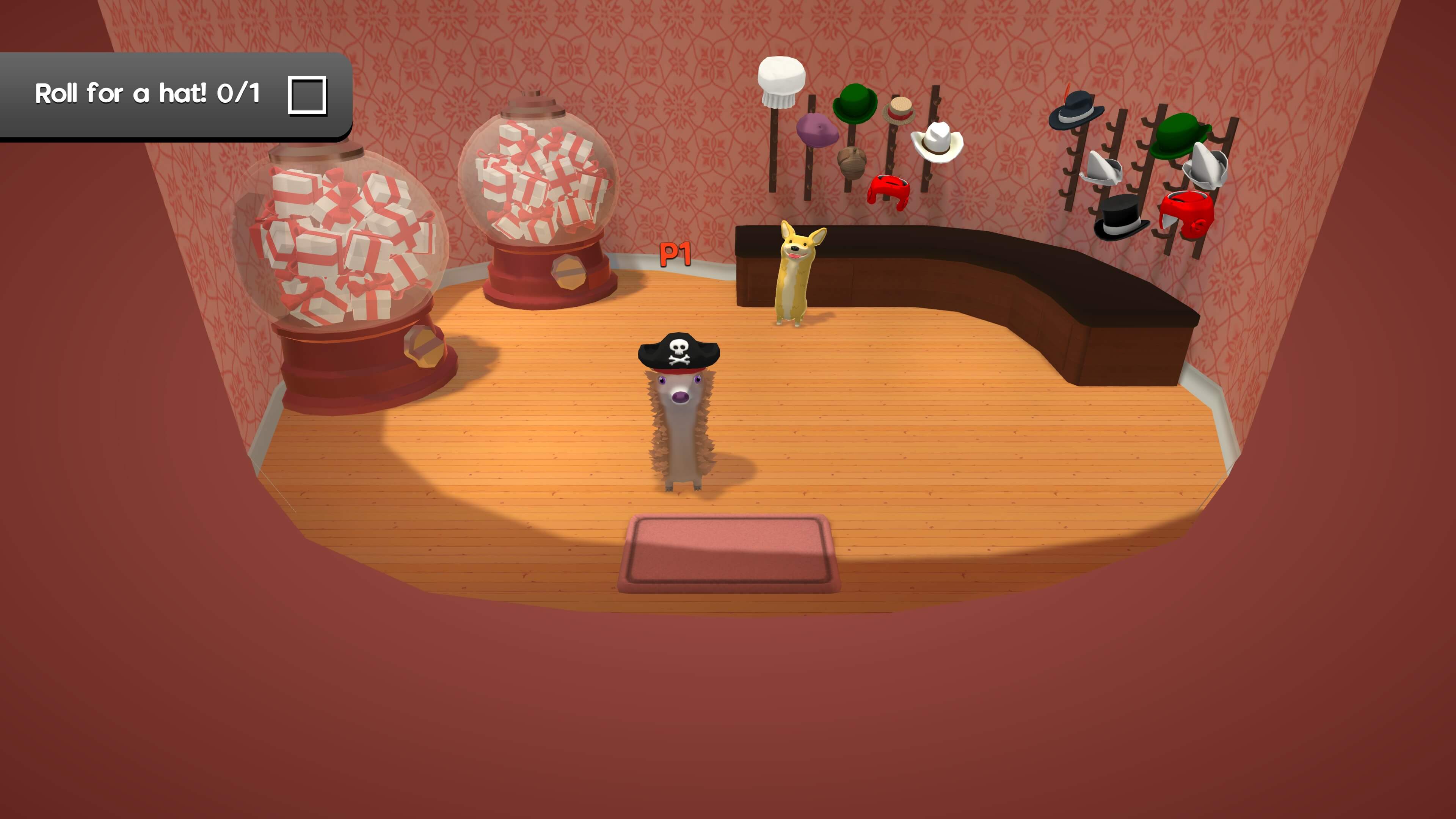 From there you move on to the Hat store, which is where all the currency you find in Sausage Sports Club (something you earn from completing quests or simply hitting random objects with your head) can be used. You are given a few coins and told to operate the bubble-gum machine full of presents in order to get yourself a new hat. No loot boxes here, folks! All hats are random, but you’ll never get the same one twice.