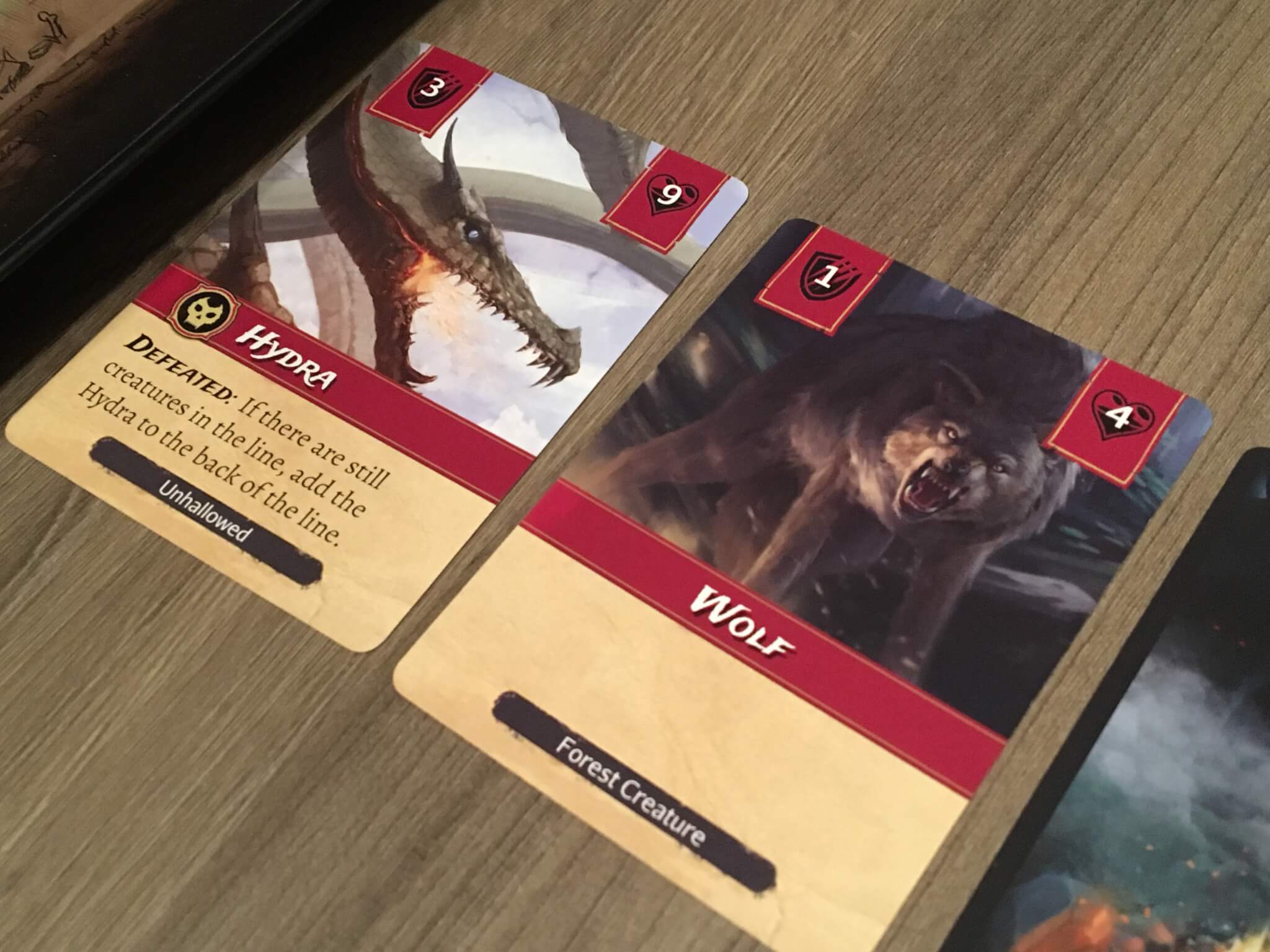 Proper use of abilities is therefore critical to success, as is timing. One example relates to the placement of monsters in the line — some monsters have reveal abilities, whilst others have abilities that relate to being first or second in the line. It can sometimes be beneficial to attack a monster that is further back, before it gains a bonus for being first in the line. Some monsters protect those adjacent to them, whilst sometimes you’ll be hoping for good luck (again) thanks to abilities like the ranger hero’s long shot, which targets and kills any unrevealed monster.