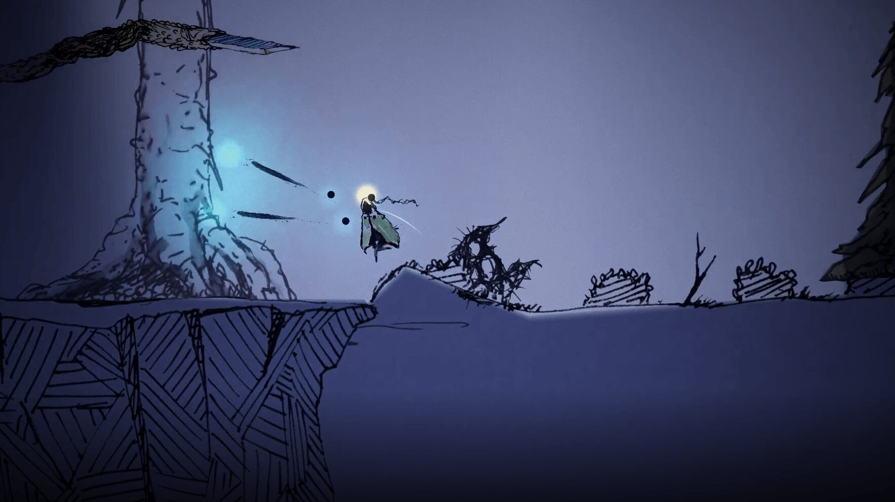 While the artwork, at the current stage of development, is a sketchy, pencilled line-work, there are plans to bring in fleshy, pulpy shades for the monsters, and no doubt similar levels of colouring for the foreground. I’m most interested in what the team do with Source of Madness‘ trees, which are looming conifers that bend under your weight as you run up and along them.