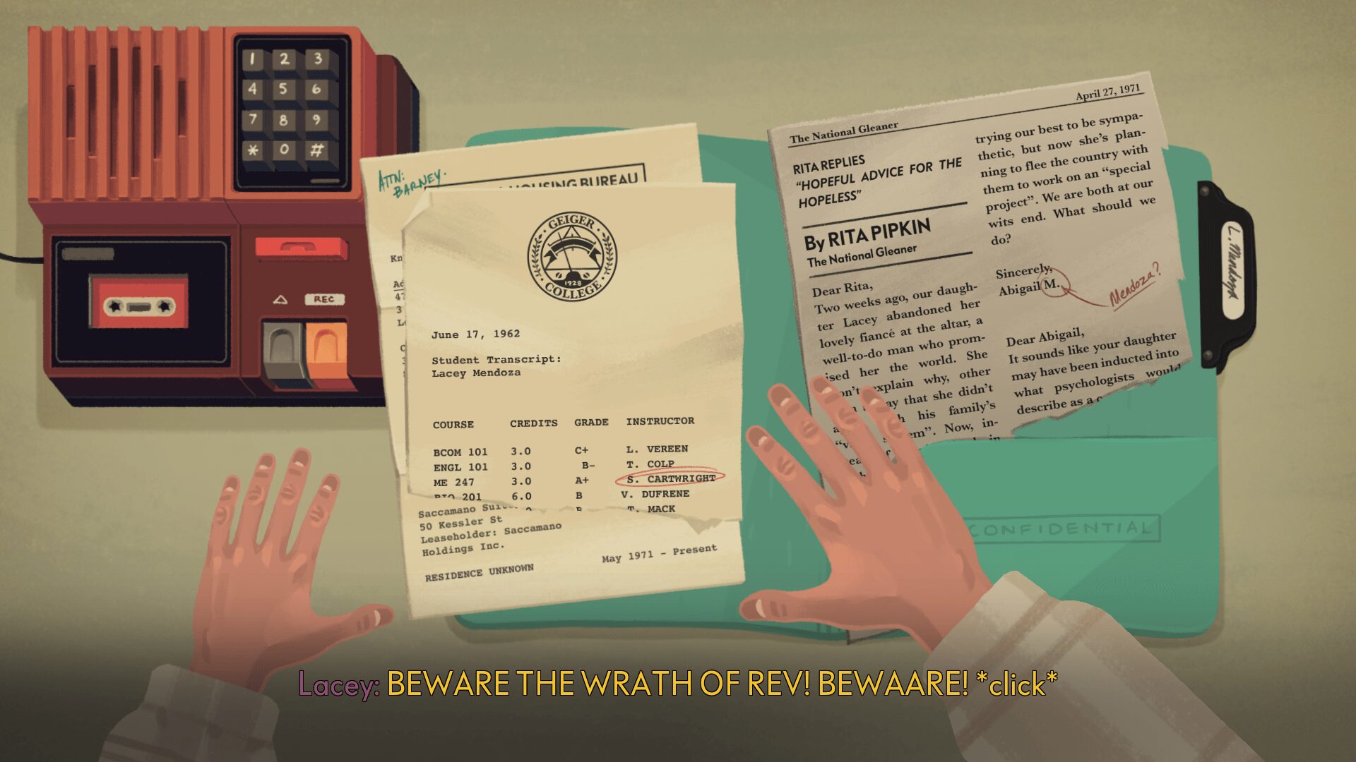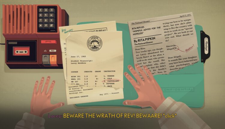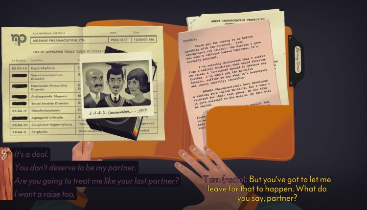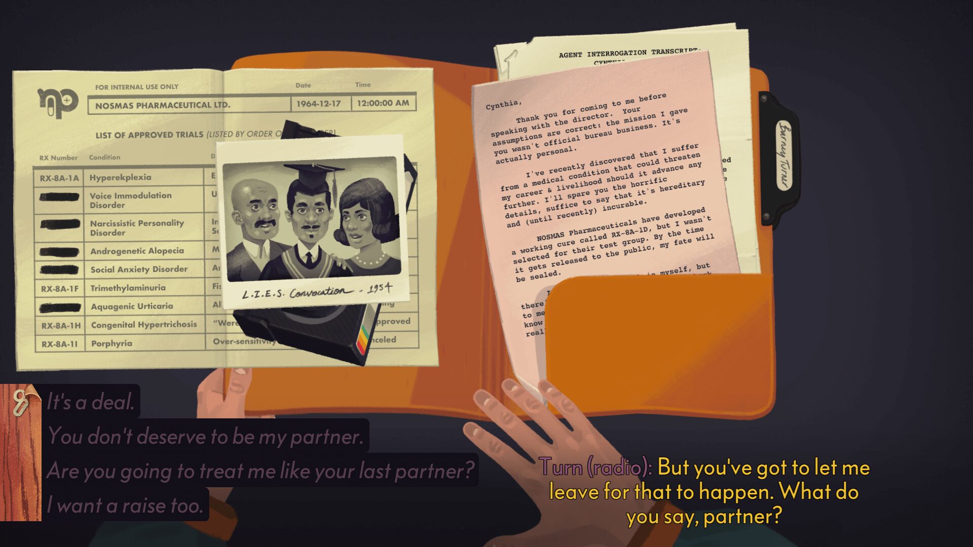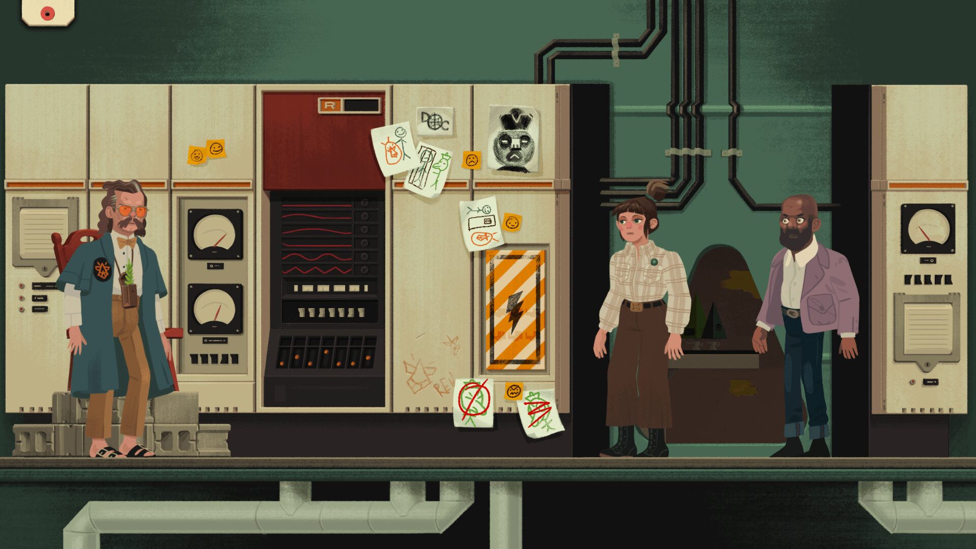 Now, The Low Road isn’t exactly an action packed game. Not by a very long stretch. It is instead a dark comedy which centres around corporate espionage. Set in the groovy times of the 1970’s, just as the information era really started to kick into full swing, even before the days of the internet. You play as the recently graduated spy Noomi Kovacs, who is not only fresh out of the academy and desperate to get into field work — by any sneaky means necessary.