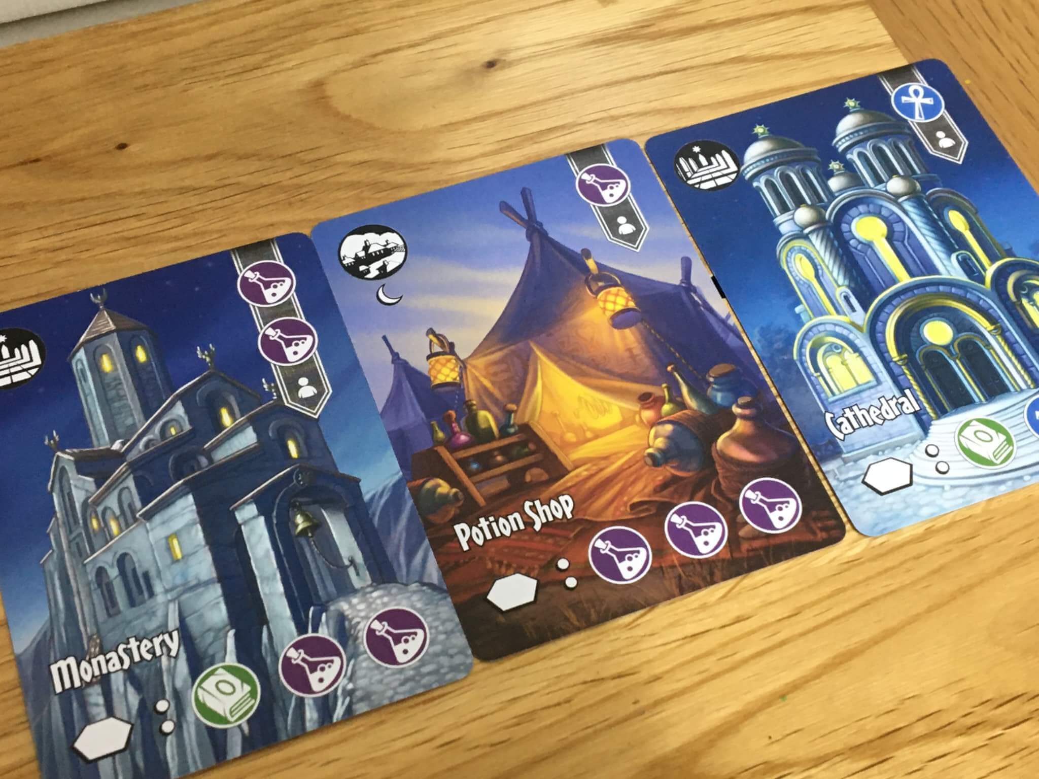 The artwork is largely of the same style as that which we saw in the preview, but I believe that there is a greater variety of imagery, with more locations and fence cards to work through. The characters and locations shown on these cards have a real character to them, and the strength of the artwork invokes the classic Discworld book covers that many people of a certain age will be familiar with.