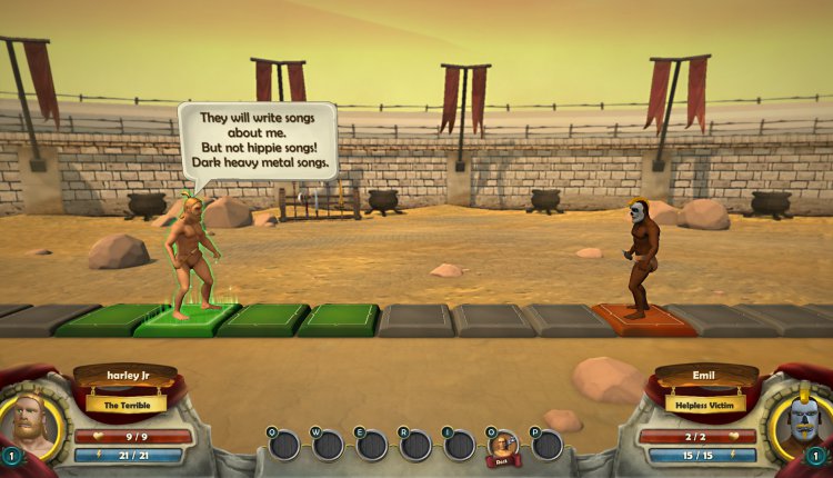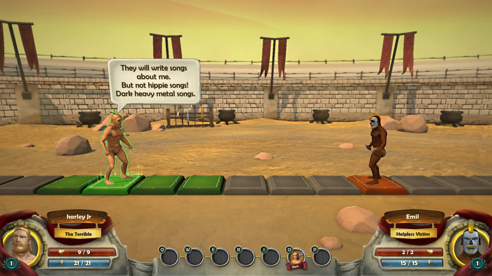 As one of my favorite genres is turn-based strategy, it was a no-brainer when the opportunity came to preview Warriors: Rise to Glory! You are a warrior (who you can name, by the way), fighting in an arena against other unlucky and unlikely warriors — all for the amusement of the audience/spectators and a deranged emperor. The art style is very cartoonish, while the blood and gore is more realistic — and very plentiful.