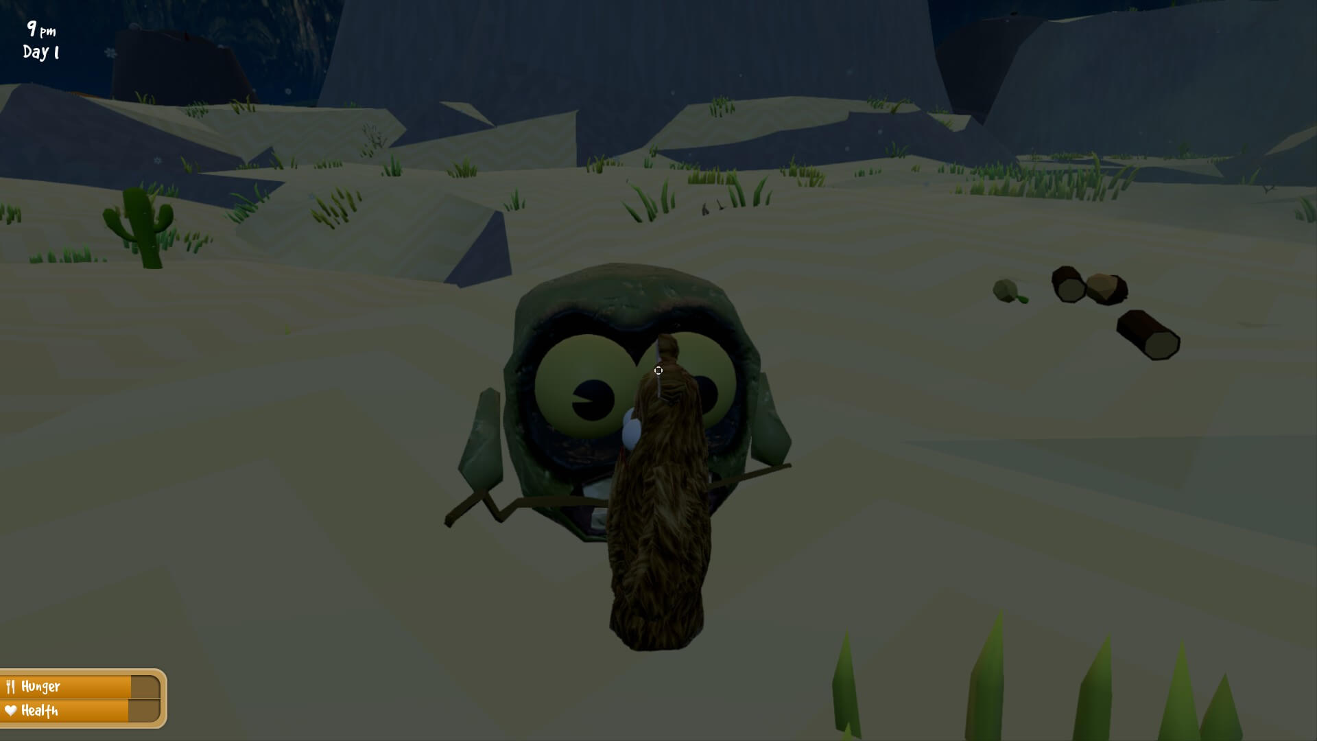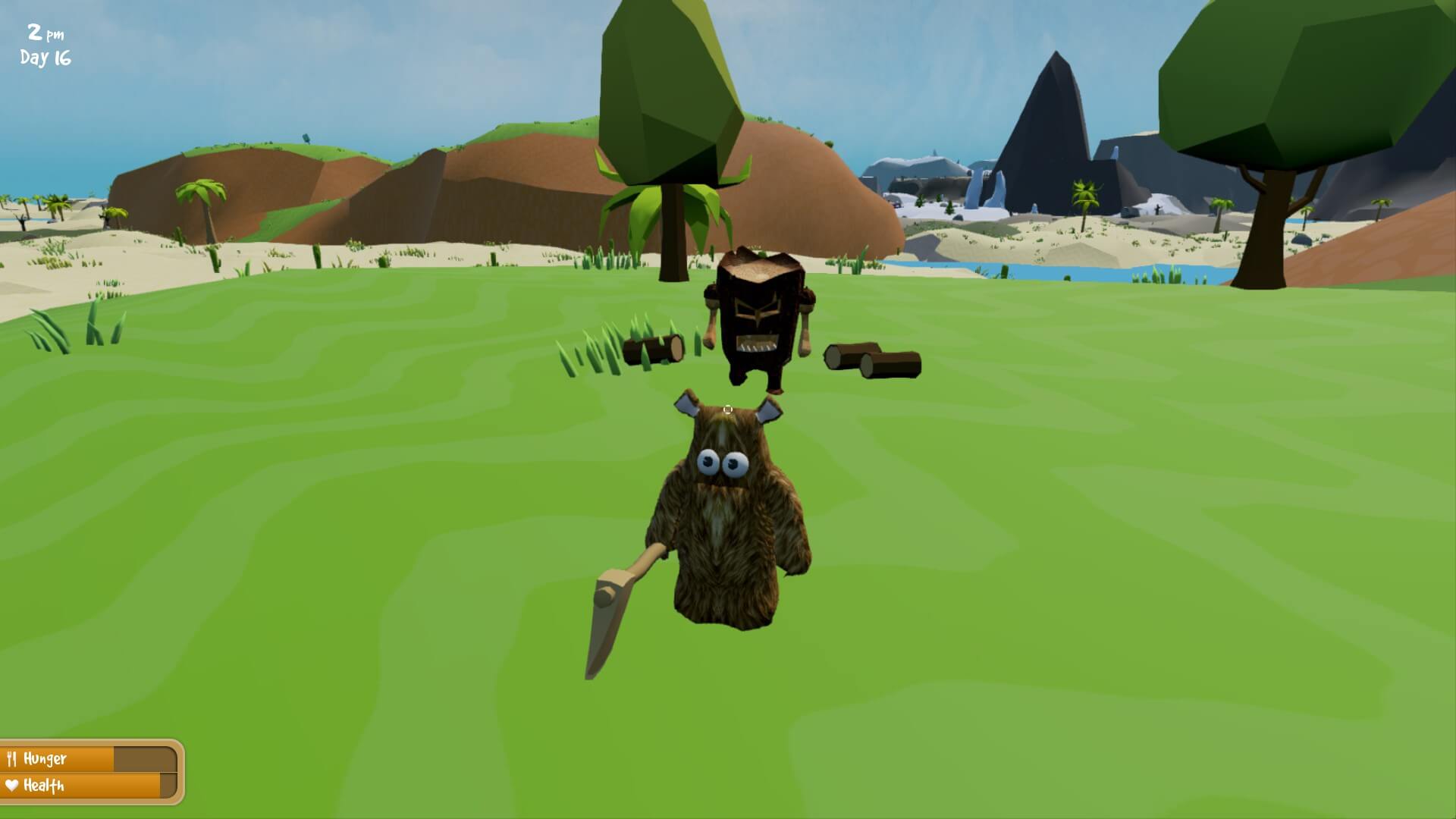 As a migraine sufferer, I had some trepidation going into a game where a bear uses its head to gather wood and stone. However, since it wasn’t actually me in Wrongworld, I could (bear-ly) watch him do it. After seeing it a few times, the concussion worry slowly clawed away.